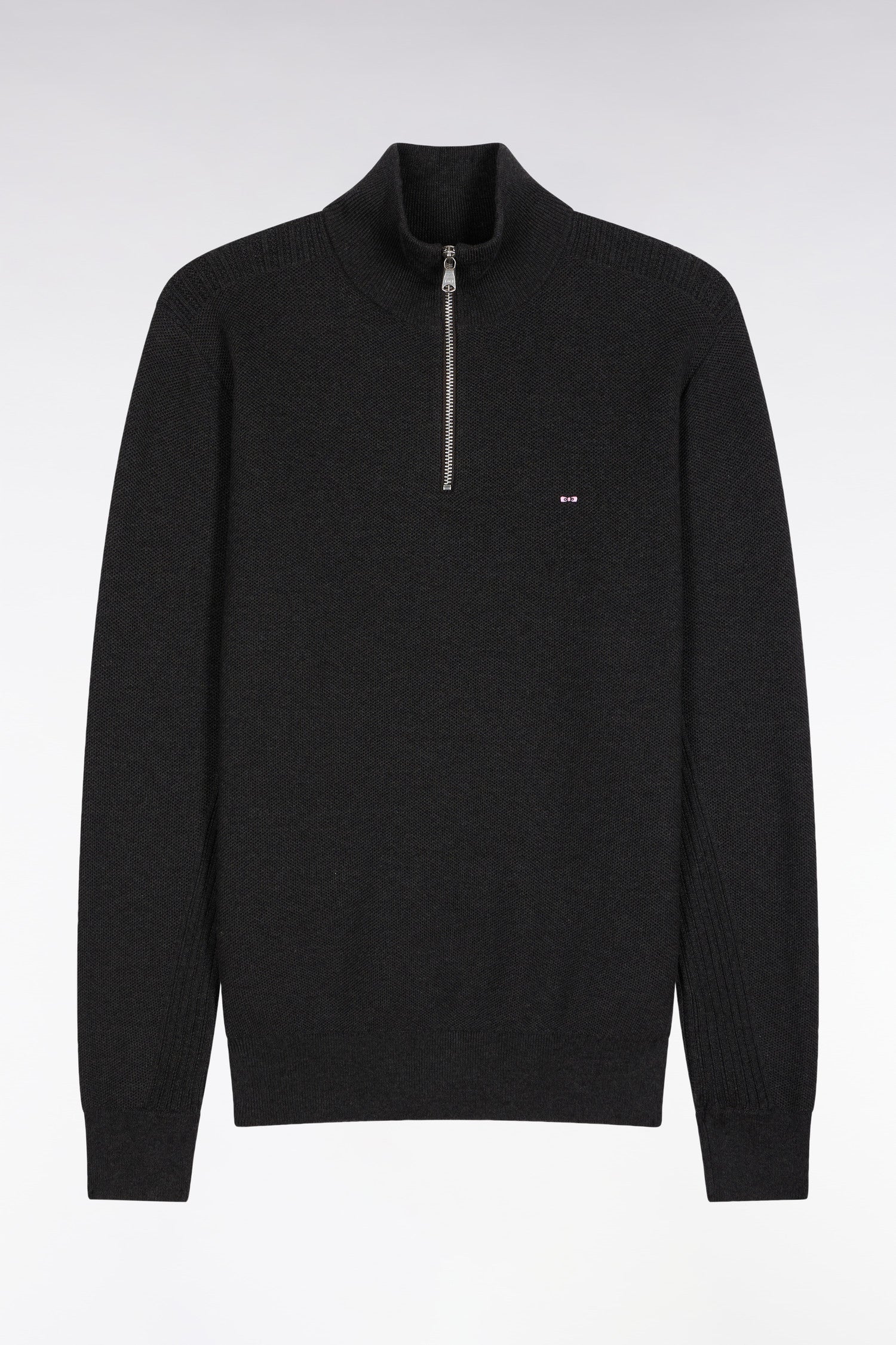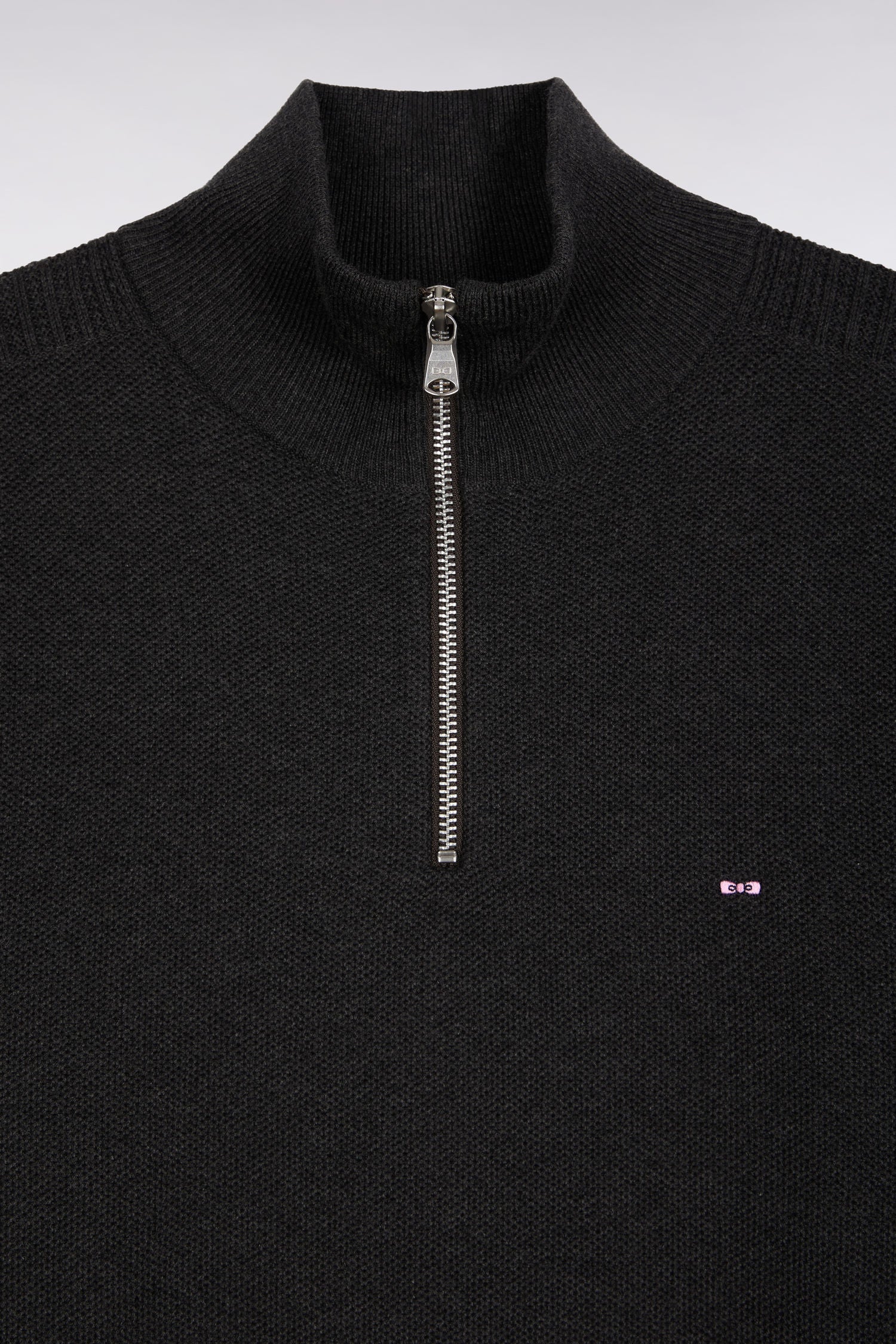 Knitted in a honeycomb cotton for a subtle, lightweight texture, this trucker sweater with zipped collar features rib knitting on the sides, shoulders and undersleeves. Its high zip collar allows you to modulate the look to suit your mood. Available in a range of timeless colors, it's a men's wardrobe essential, to be worn season after season.