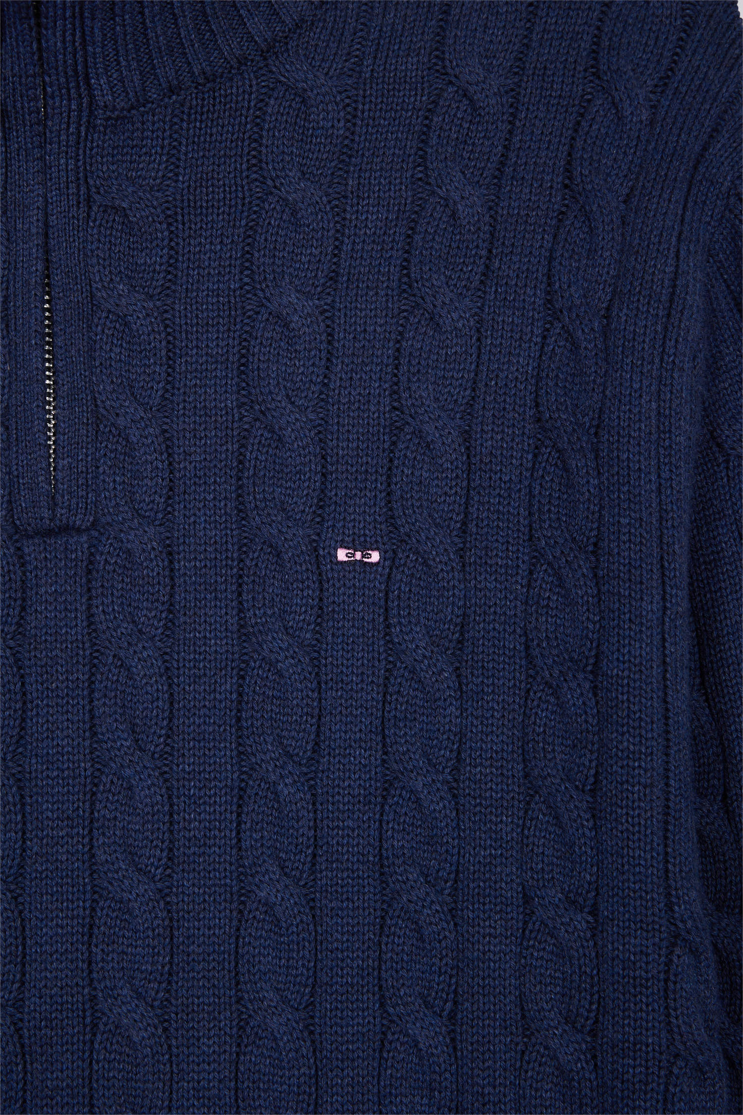 With its zipped stand-up collar and twisted knit, this pure cotton sweater has a trendy, preppy look. Its meticulous finishing and knitwork give depth to this piece, designed to combine comfort and elegance all day long. Available in 4 timeless colors: beige, navy, gray or brown, this cable-knit sweater is a must-have for men's wardrobes, whether worn alone or layered over a shirt.