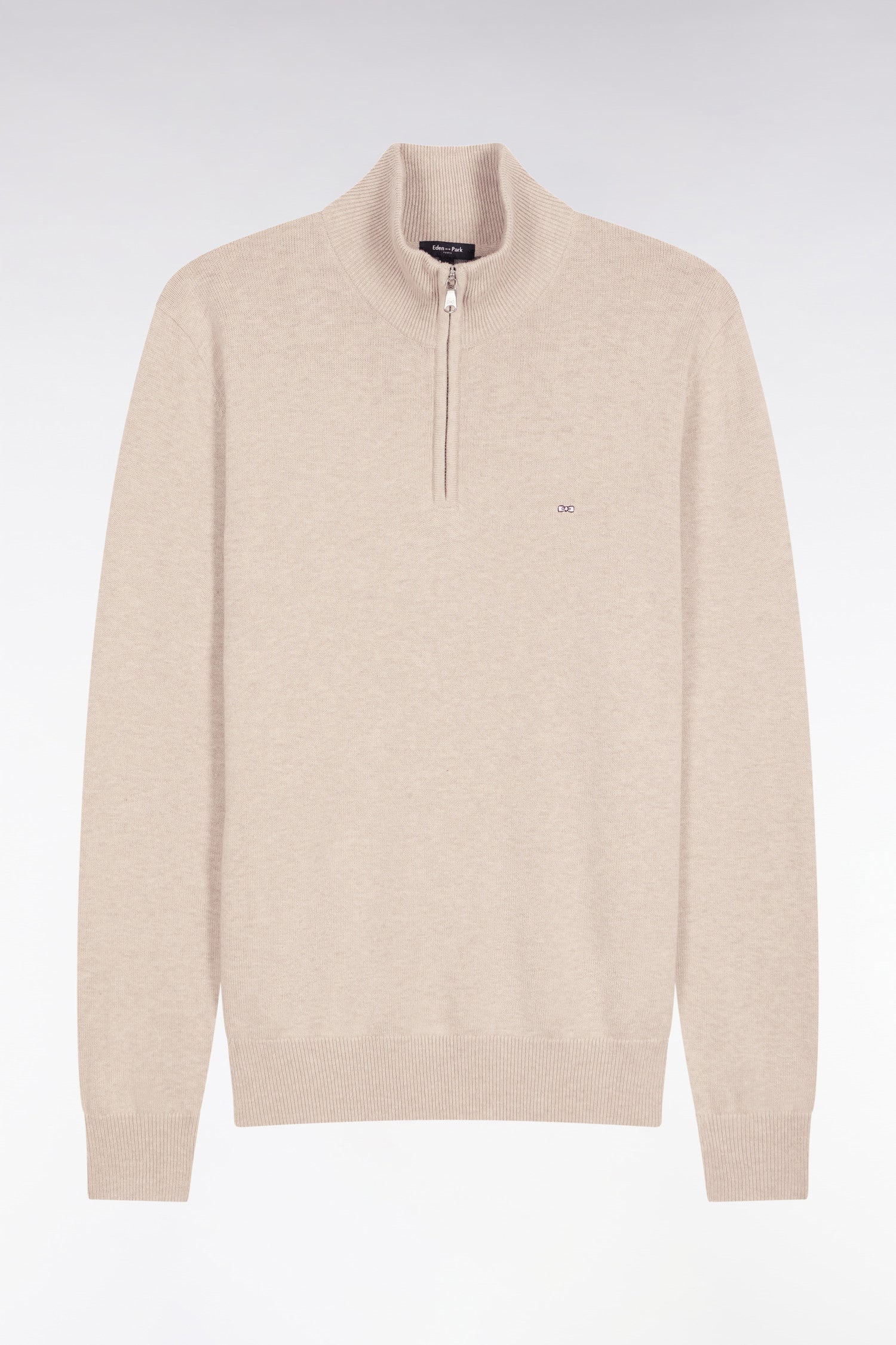 A men's wardrobe classic, the zipped trucker-neck sweater in wool and cotton blend embodies the functional elegance of the Eden Park wardrobe. Its comfortable straight cut lends itself to all kinds of layering. The bowtie embroidery on the chest and the signature slider zip give this timeless sweater the discreet signature of our French house. All you have to do is choose from 14 colors!