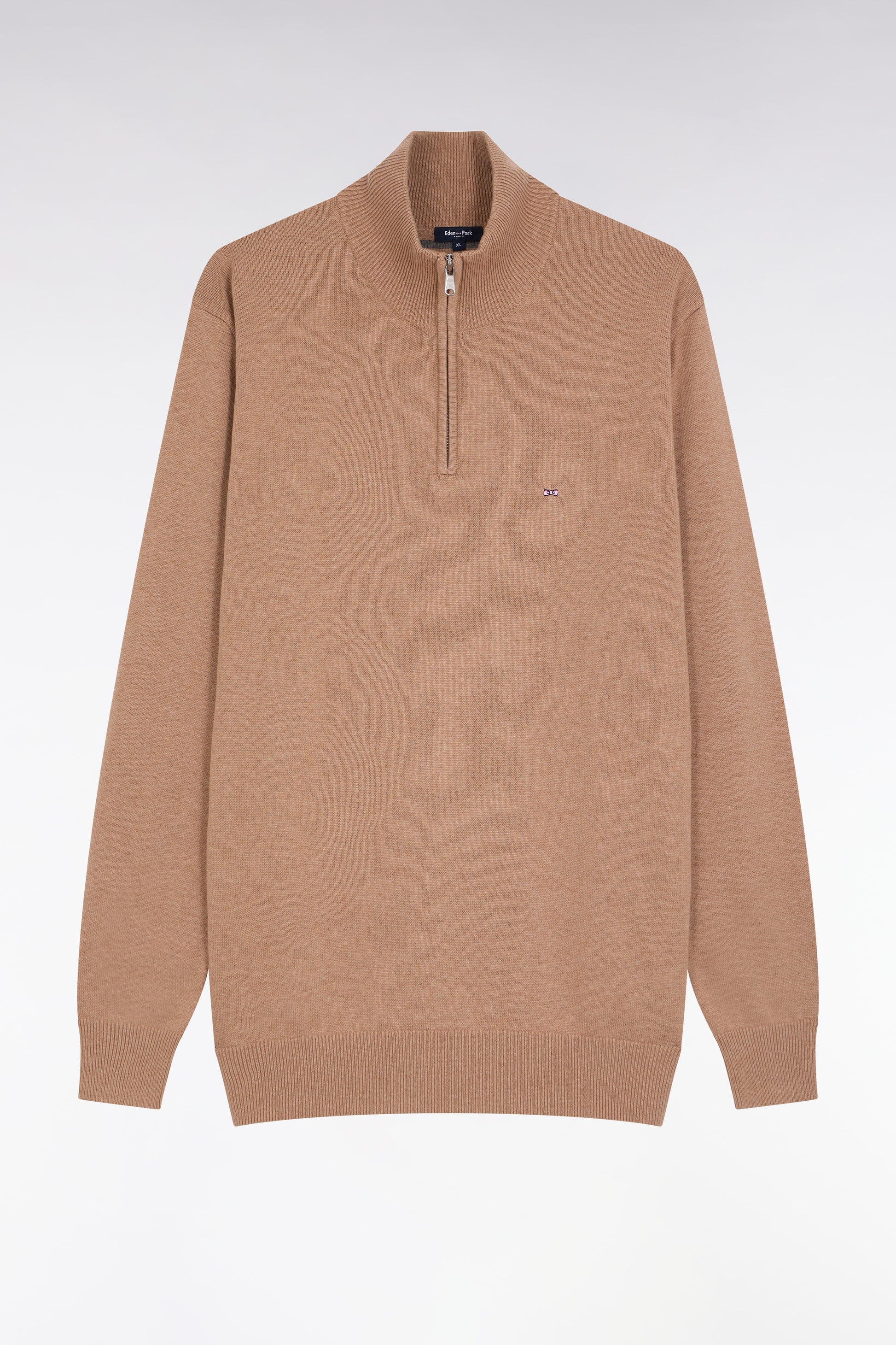 A men's wardrobe classic, the zipped trucker-neck sweater in wool and cotton blend embodies the functional elegance of the Eden Park wardrobe. Its comfortable straight cut lends itself to all kinds of layering. The bowtie embroidery on the chest and the signature slider zip give this timeless sweater the discreet signature of our French house. All you have to do is choose from 14 colors!