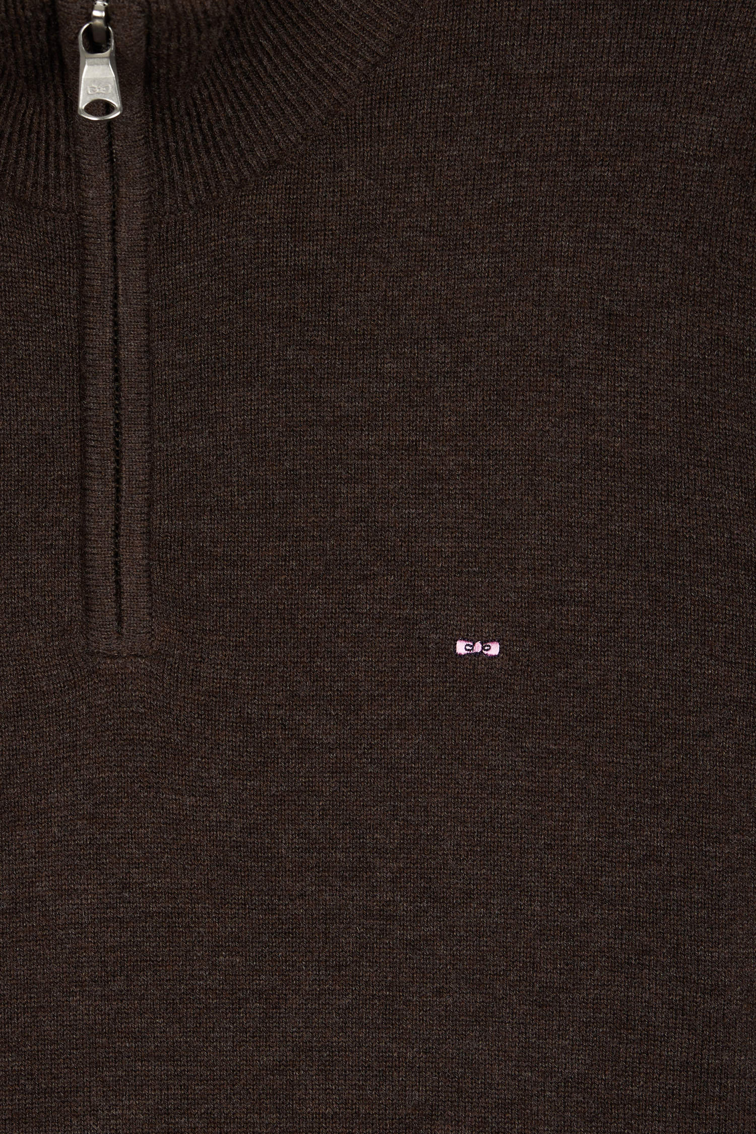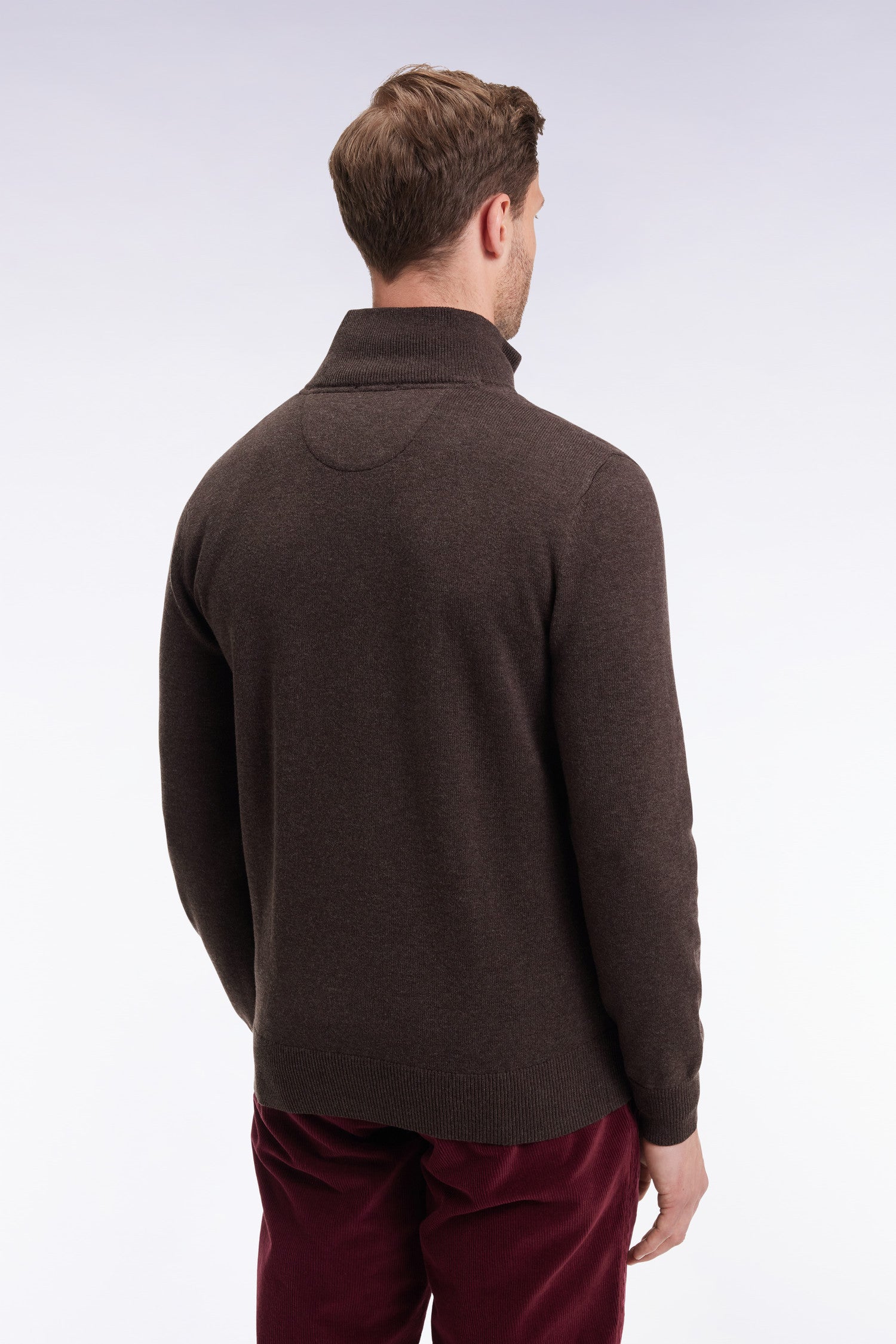 A men's wardrobe classic, the zipped trucker-neck sweater in wool and cotton blend embodies the functional elegance of the Eden Park wardrobe. Its comfortable straight cut lends itself to all kinds of layering. The bowtie embroidery on the chest and the signature slider zip give this timeless sweater the discreet signature of our French house. All you have to do is choose from 14 colors!
