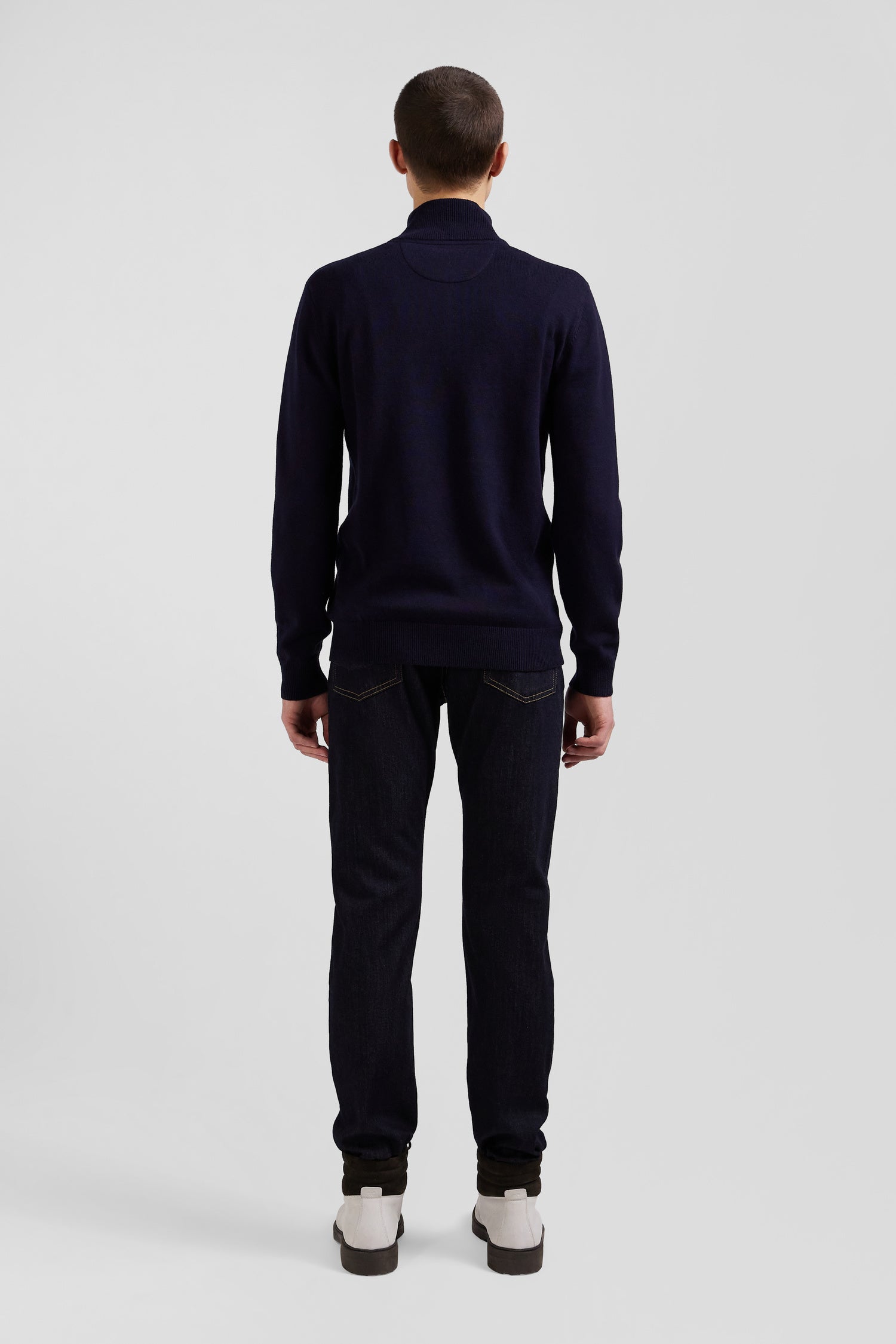 This men's zip-up trucker-neck sweater, lined with a hooped striped inner half-moon, is an essential piece in our autumn-winter collection. Available in a wide range of colors, this high-quality wool and cotton sweater brings a touch of casual sophistication to any outfit. Careful attention to every detail, from the cut to the playful layering, is testament to our commitment to quality finishes, offering unrivalled comfort and distinctive style for all occasions.