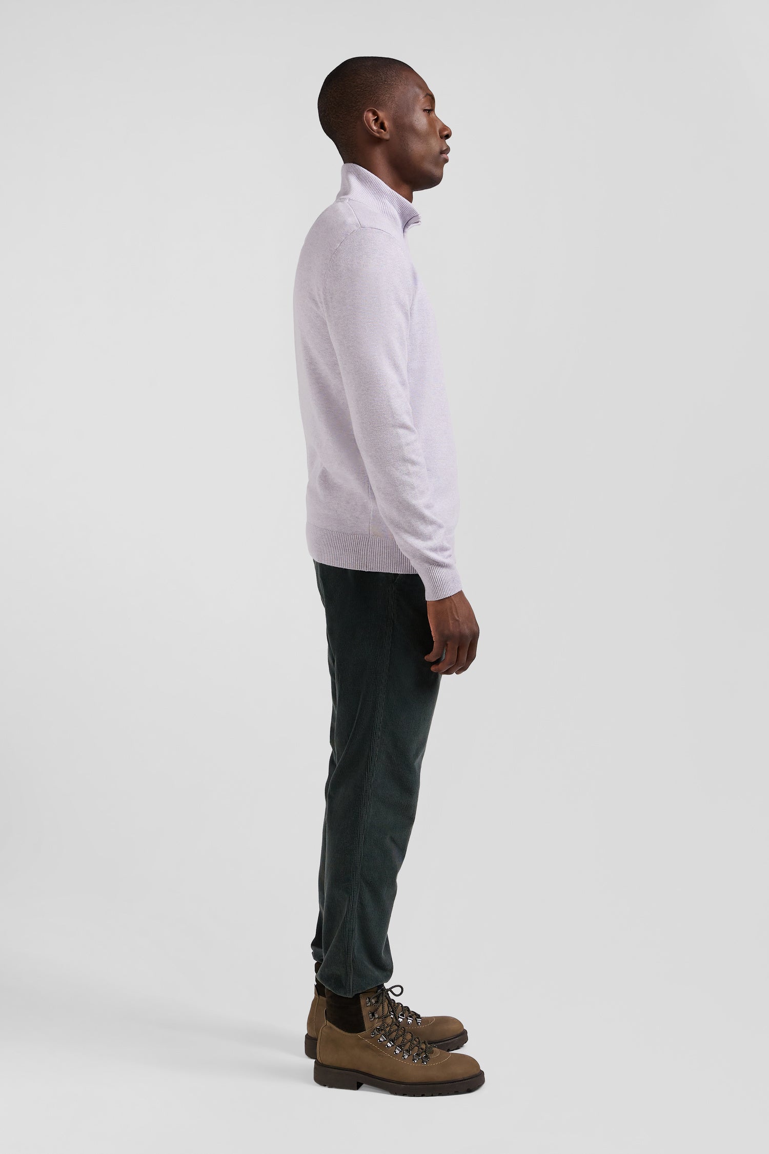 This men's zip-up trucker-neck sweater, lined with a hooped striped inner half-moon, is an essential piece in our autumn-winter collection. Available in a wide range of colors, this high-quality wool and cotton sweater adds a touch of casual sophistication to any outfit. Careful attention to every detail, from the cut to the playful layering, is testament to our commitment to quality finishes, offering unrivalled comfort and distinctive style for all occasions.