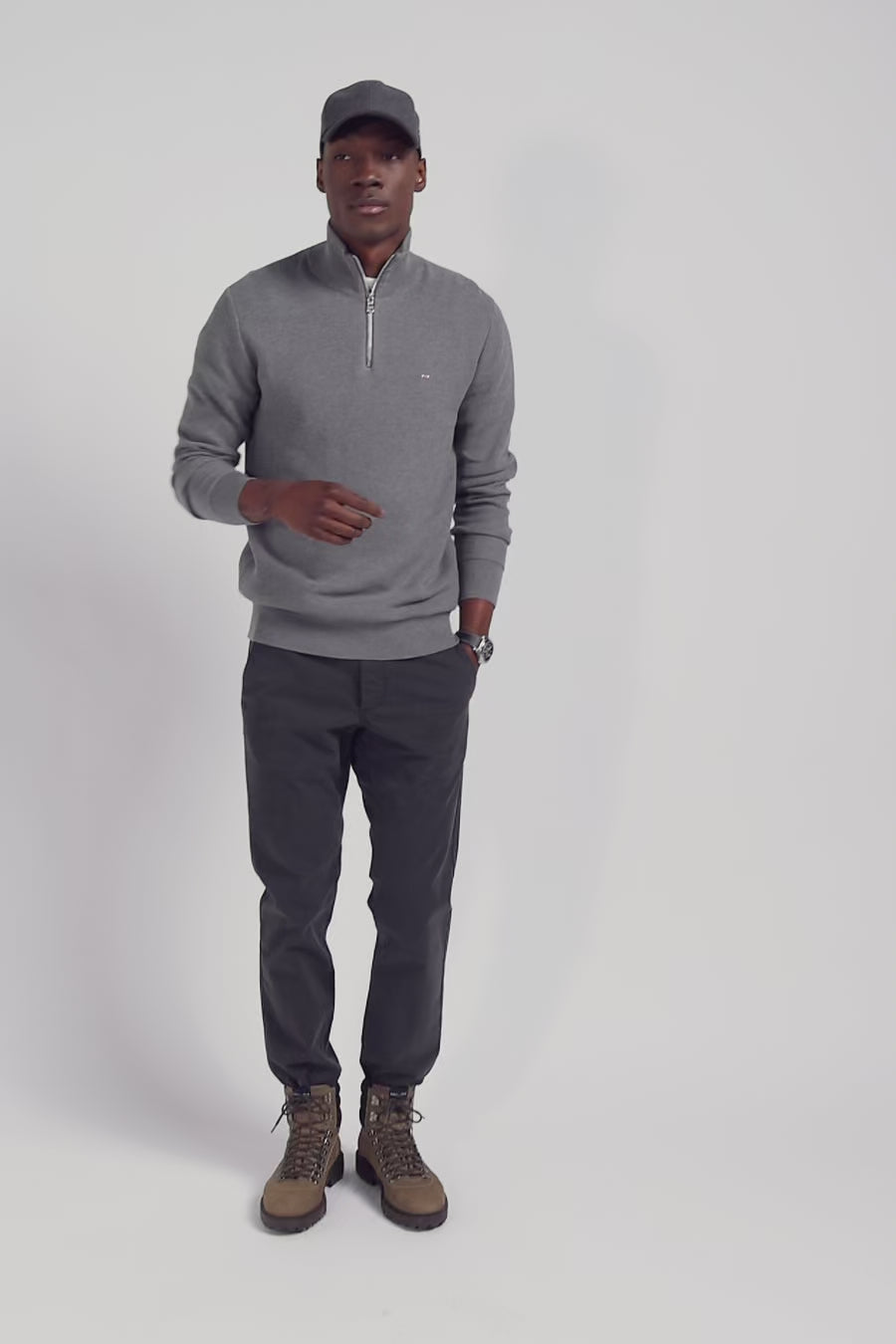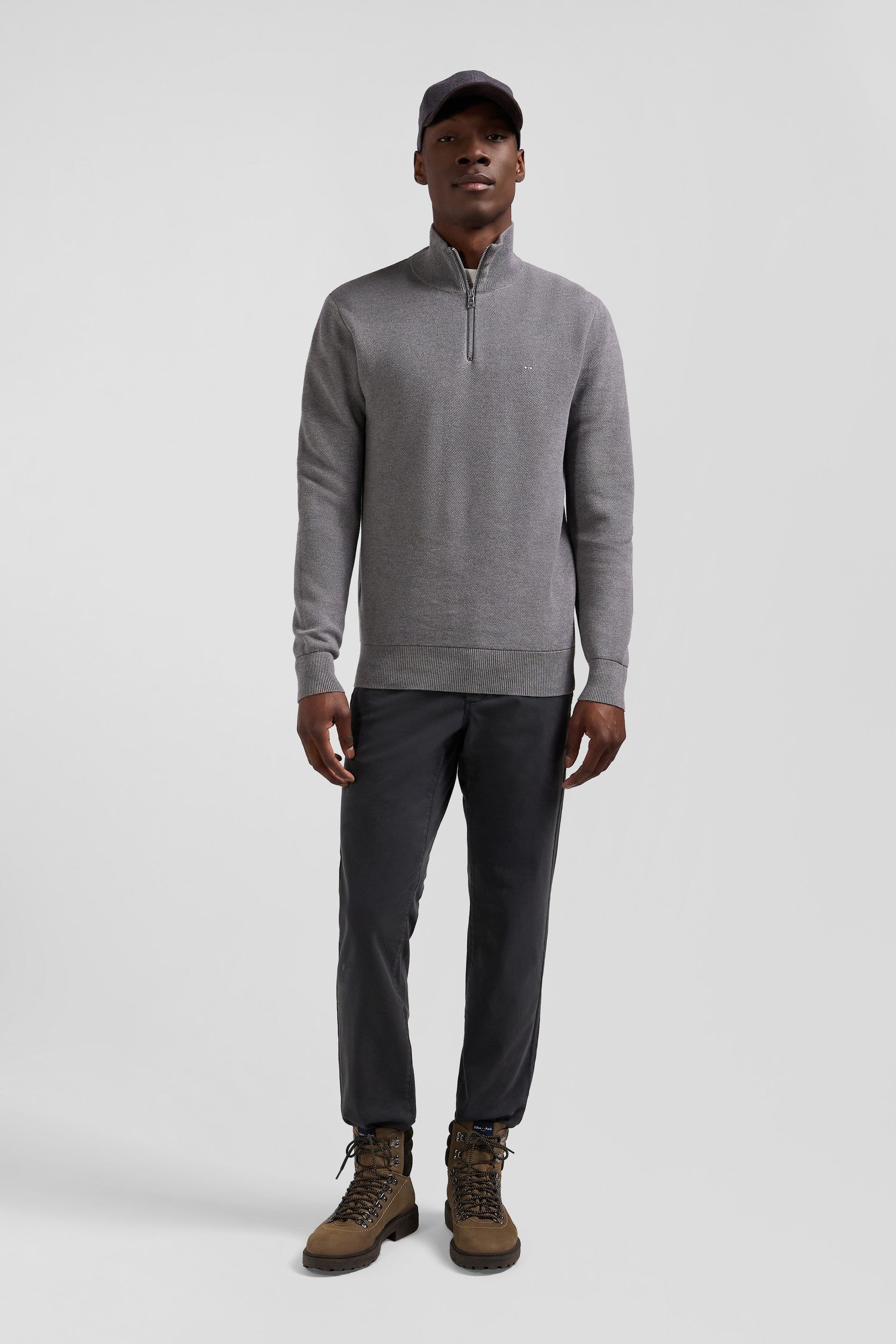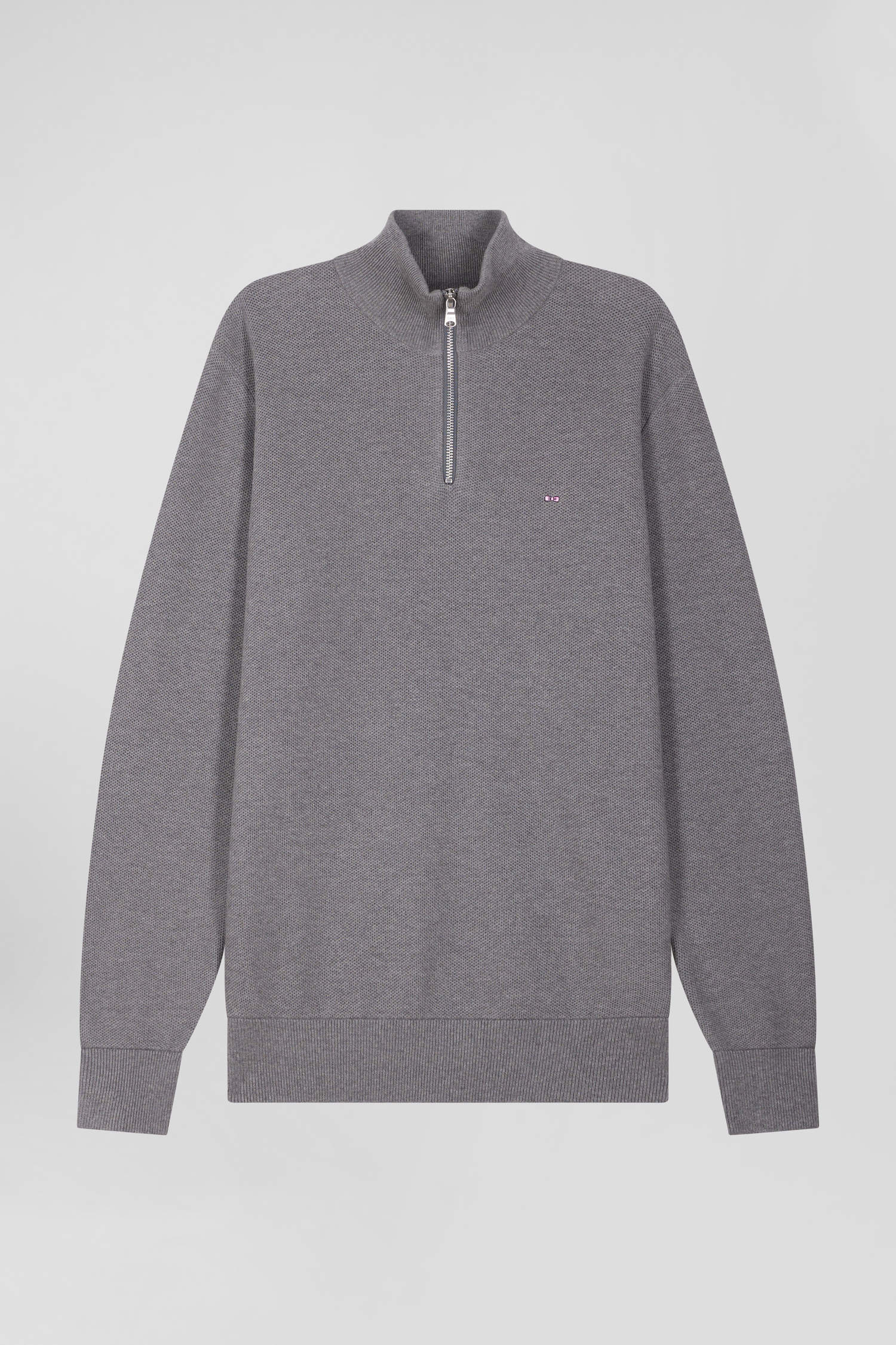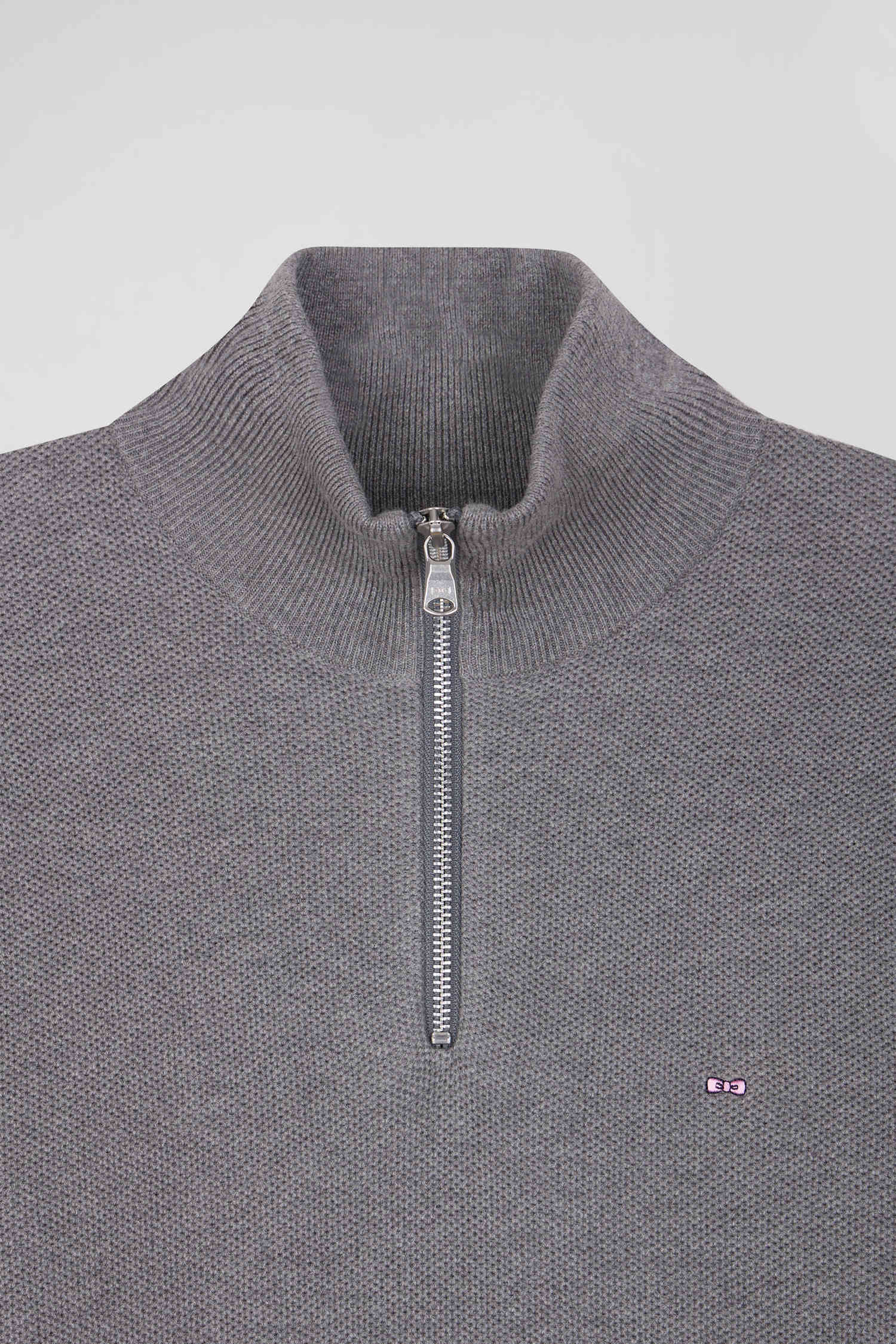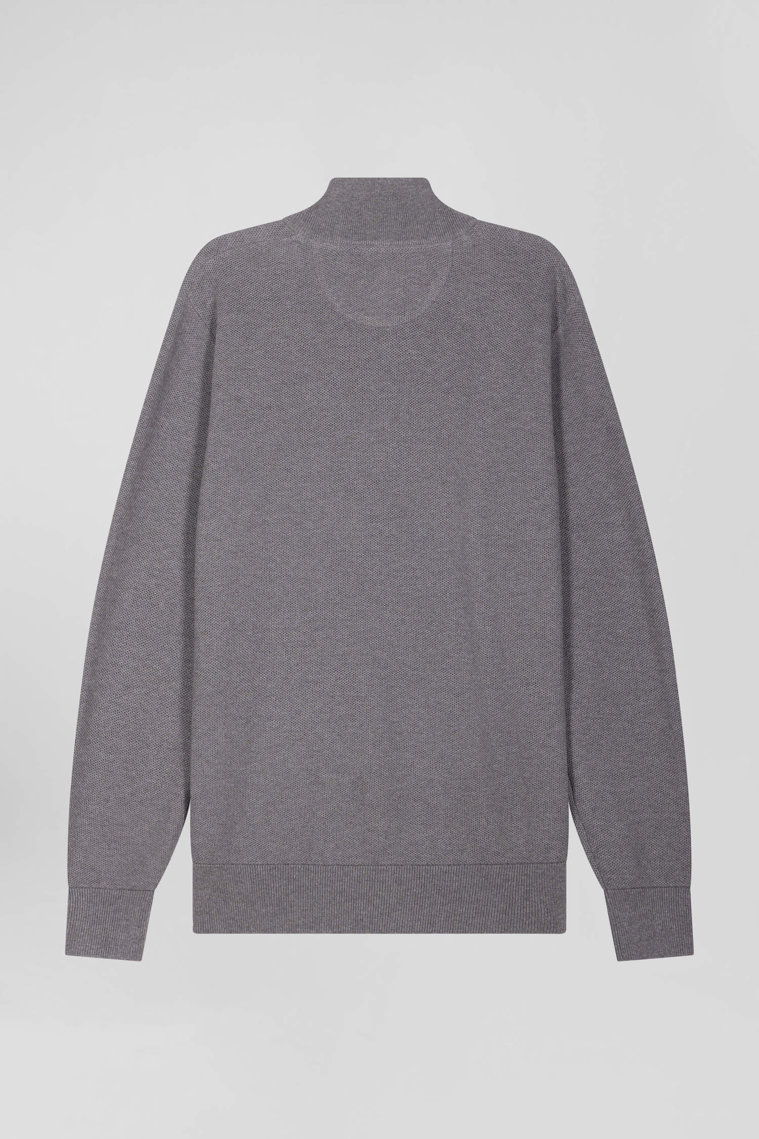 Regular grey cotton semi-zipped jumper