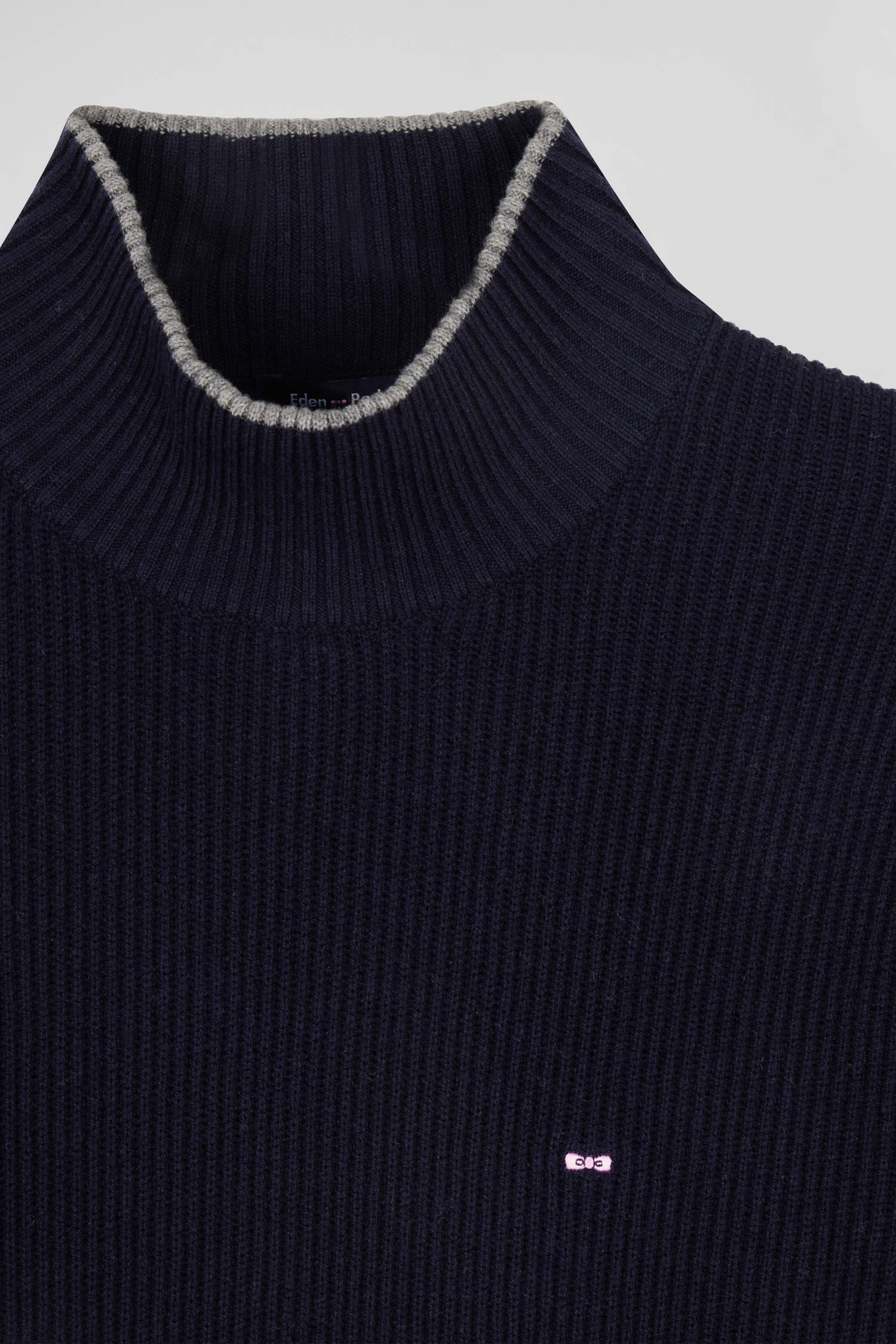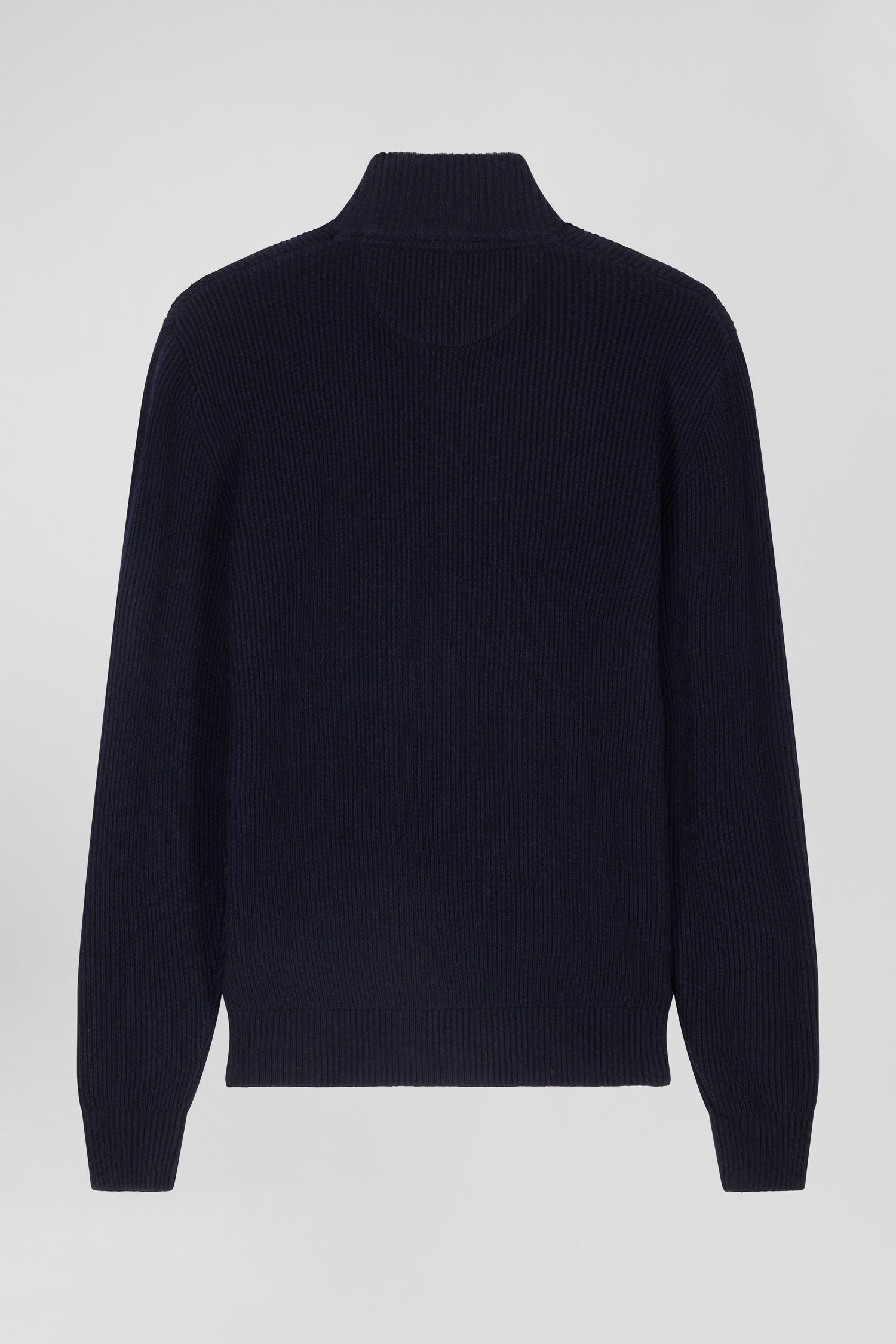 Regular navy blue wool and cotton high-neck jumper