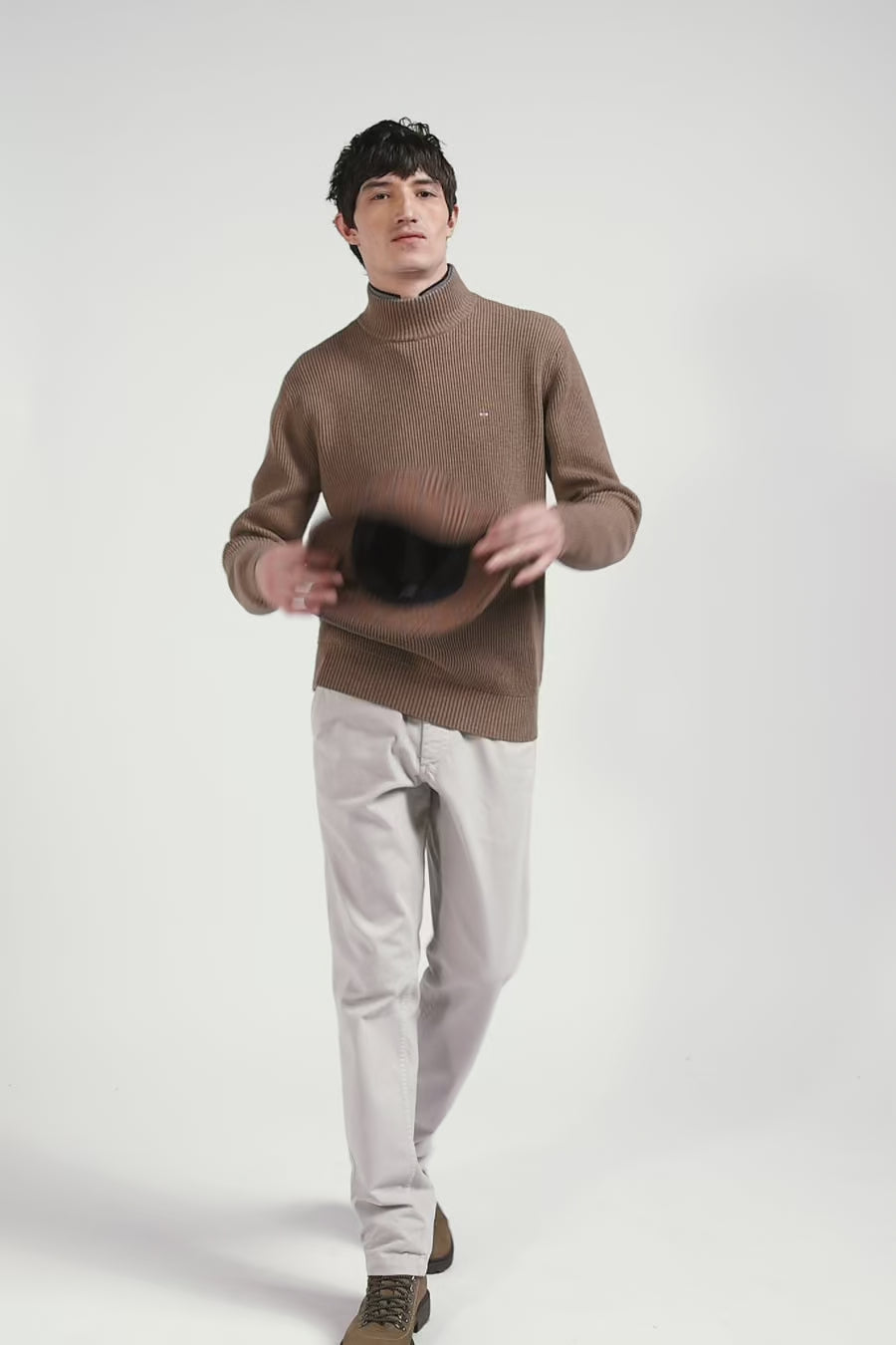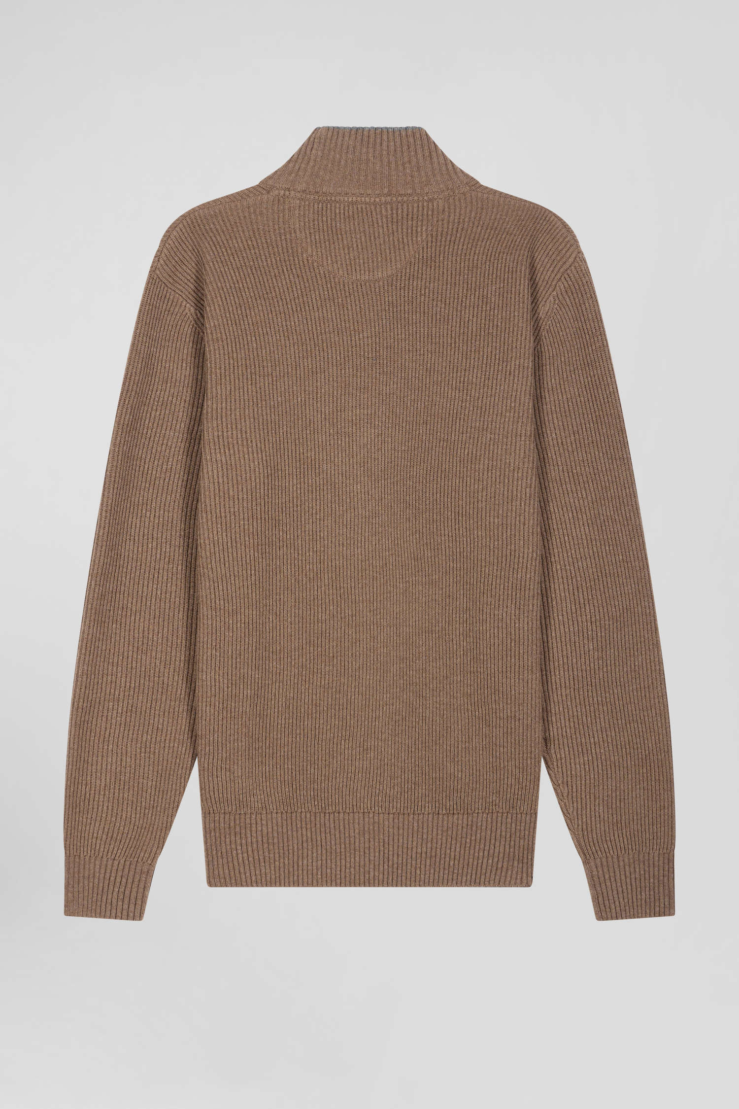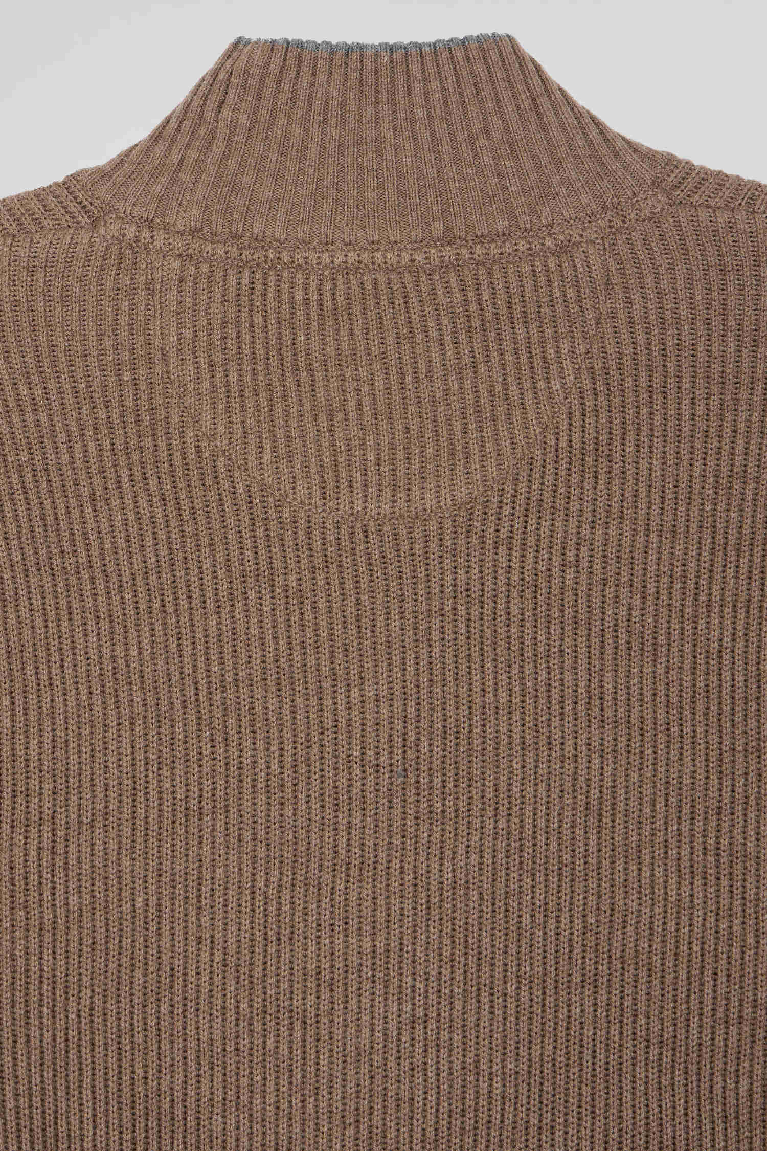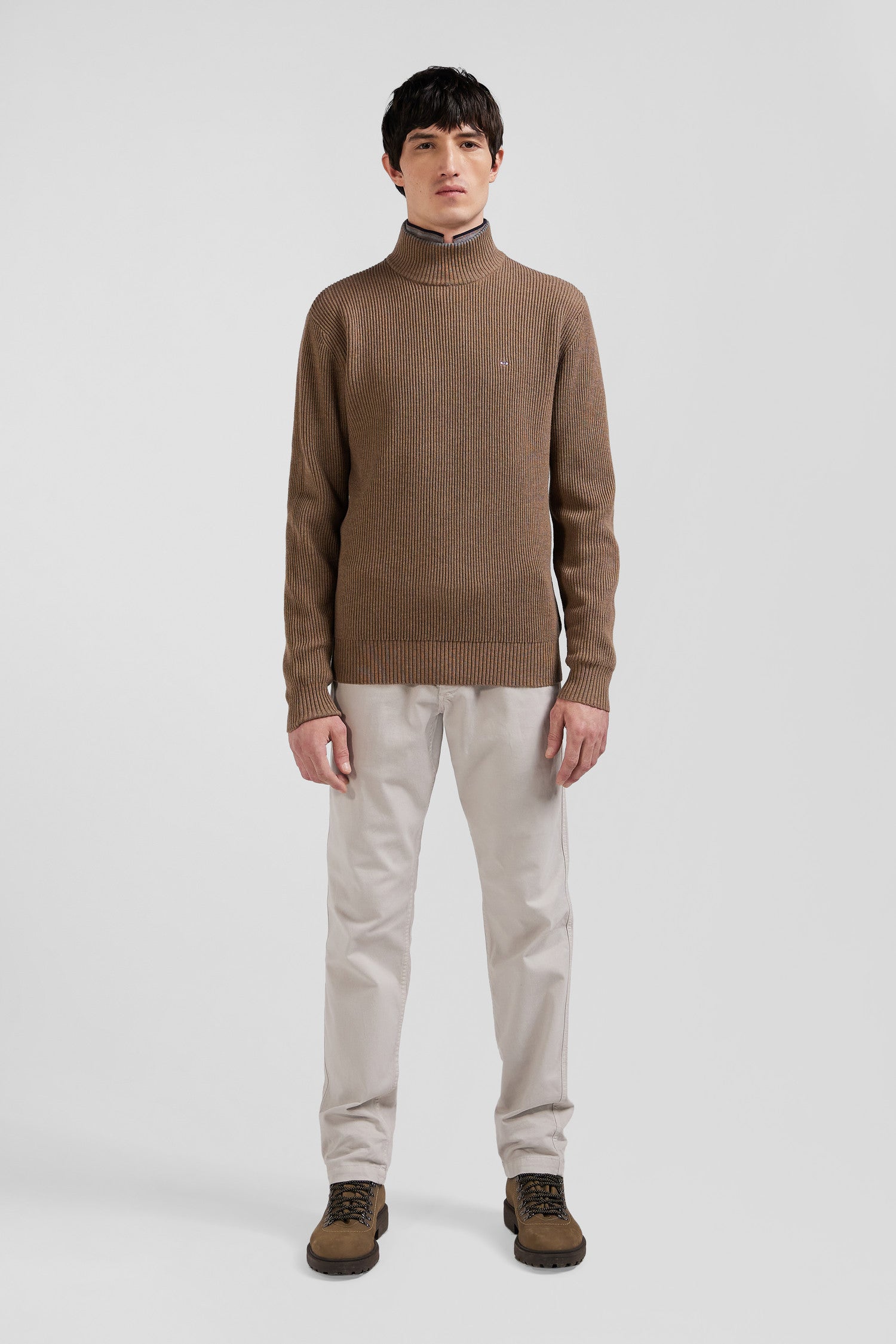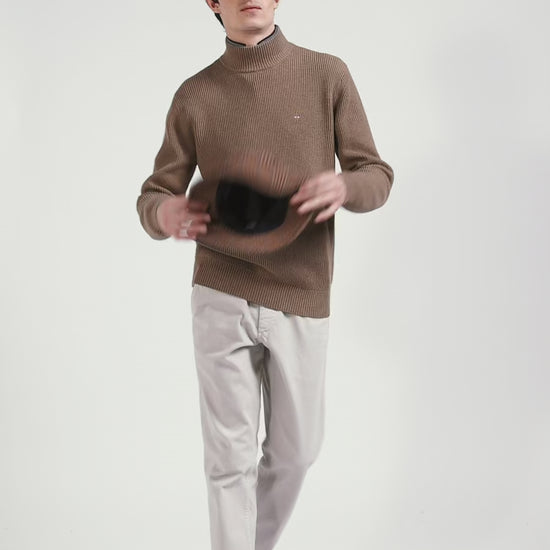 Regular brown wool and cotton high-neck jumper
