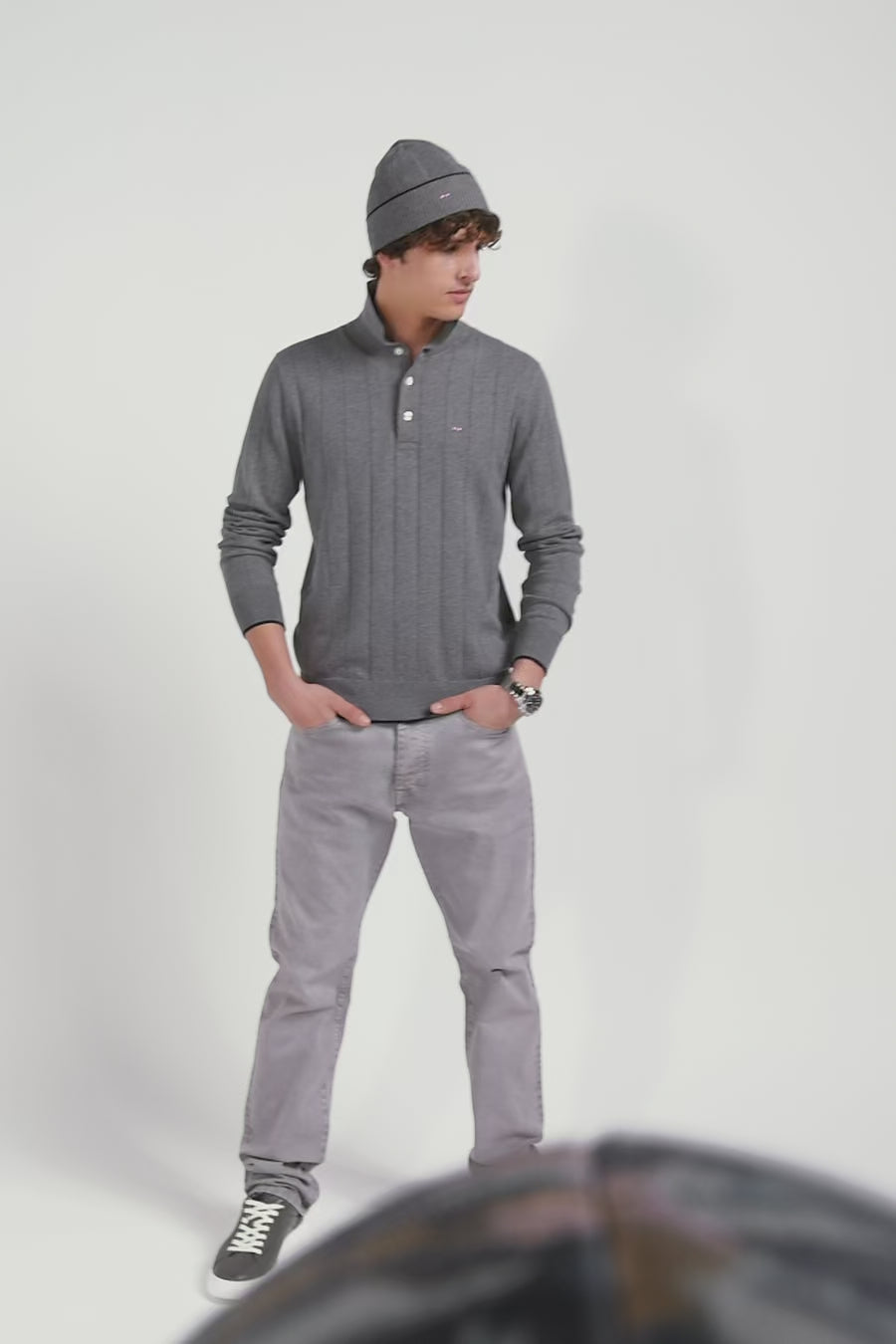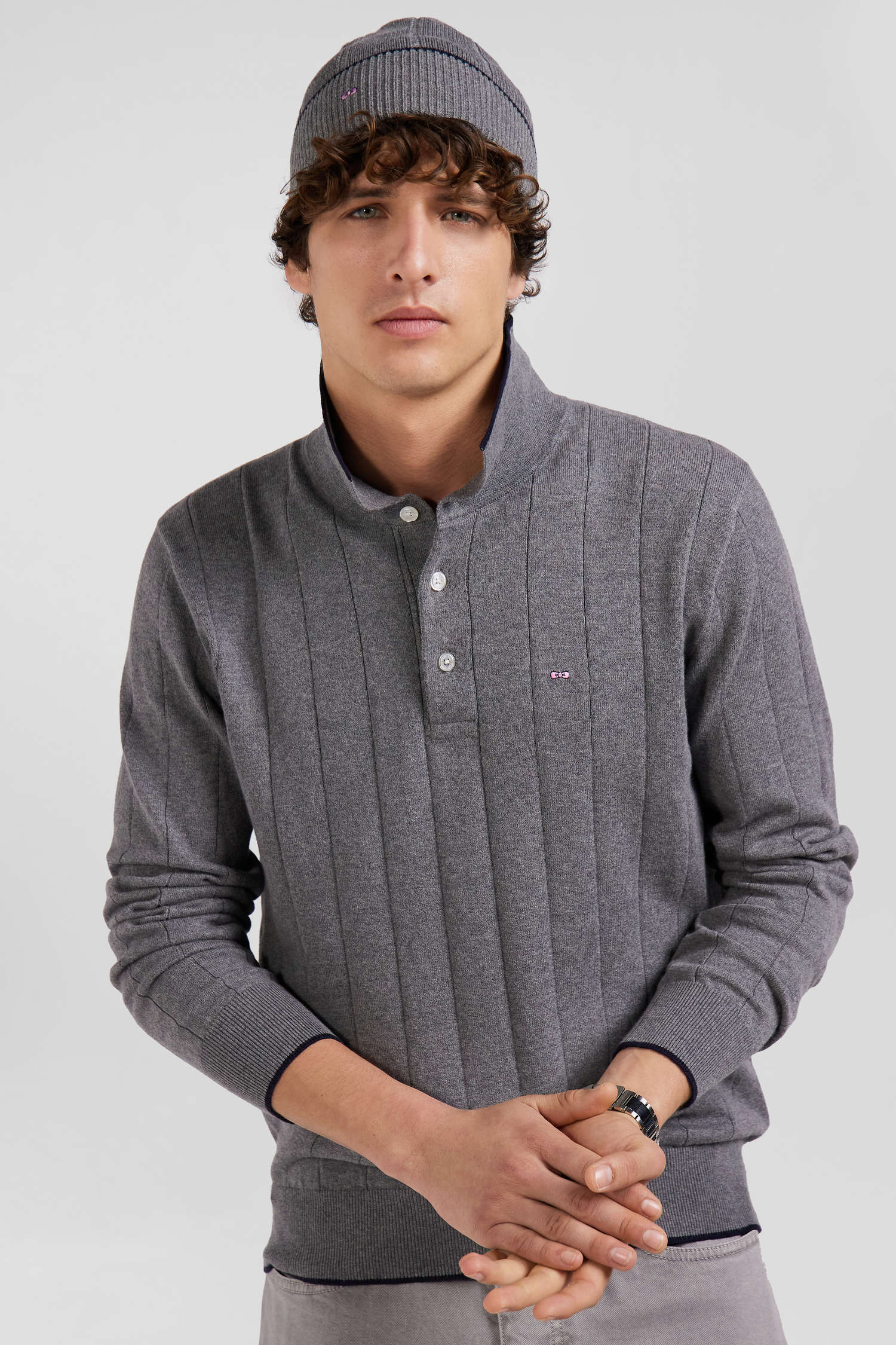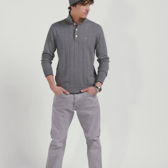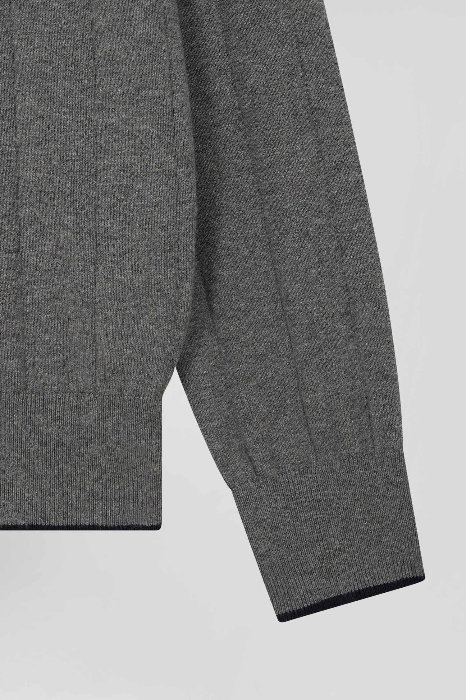 Regular grey cotton and cashmere jumper with rugby shirt collar
