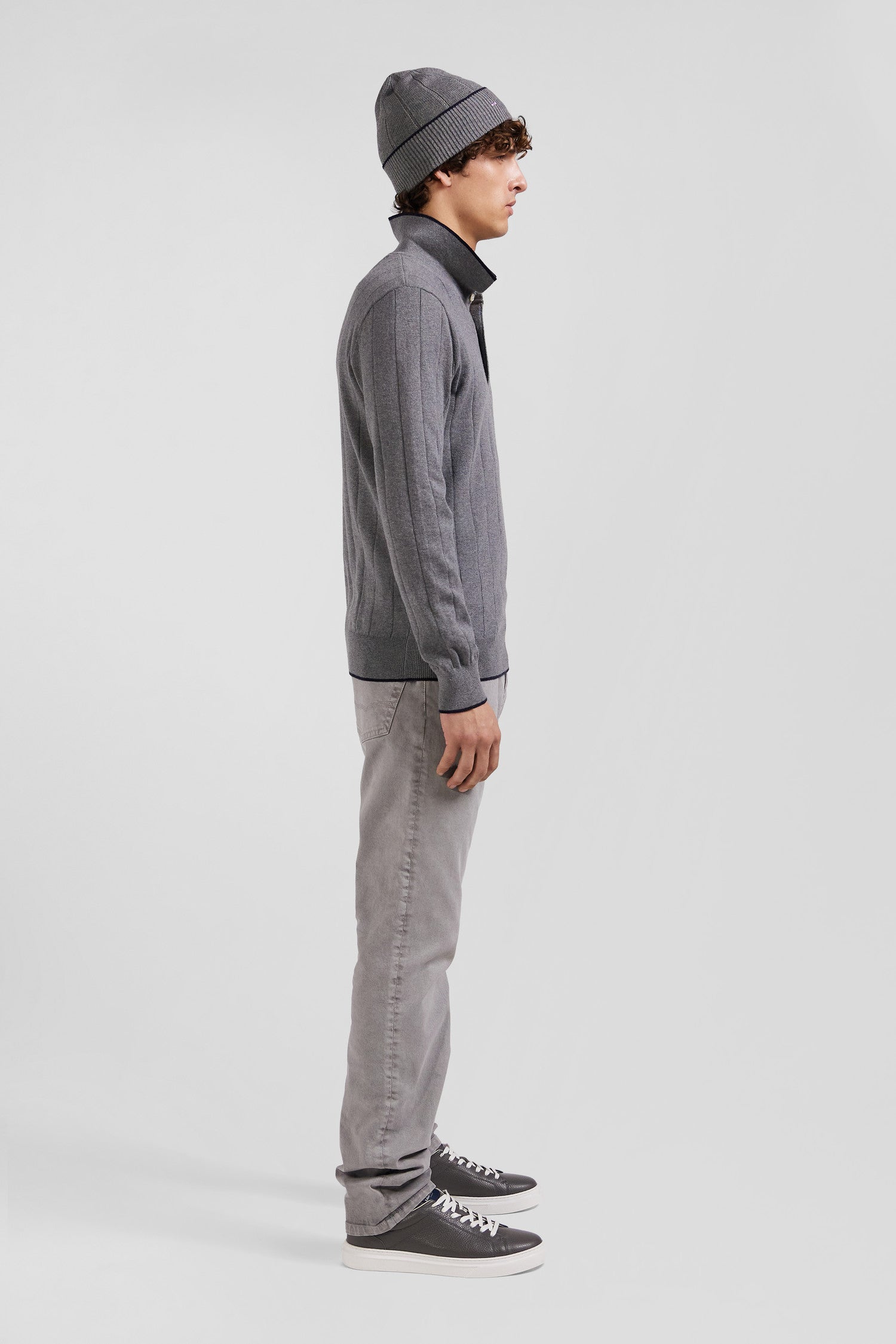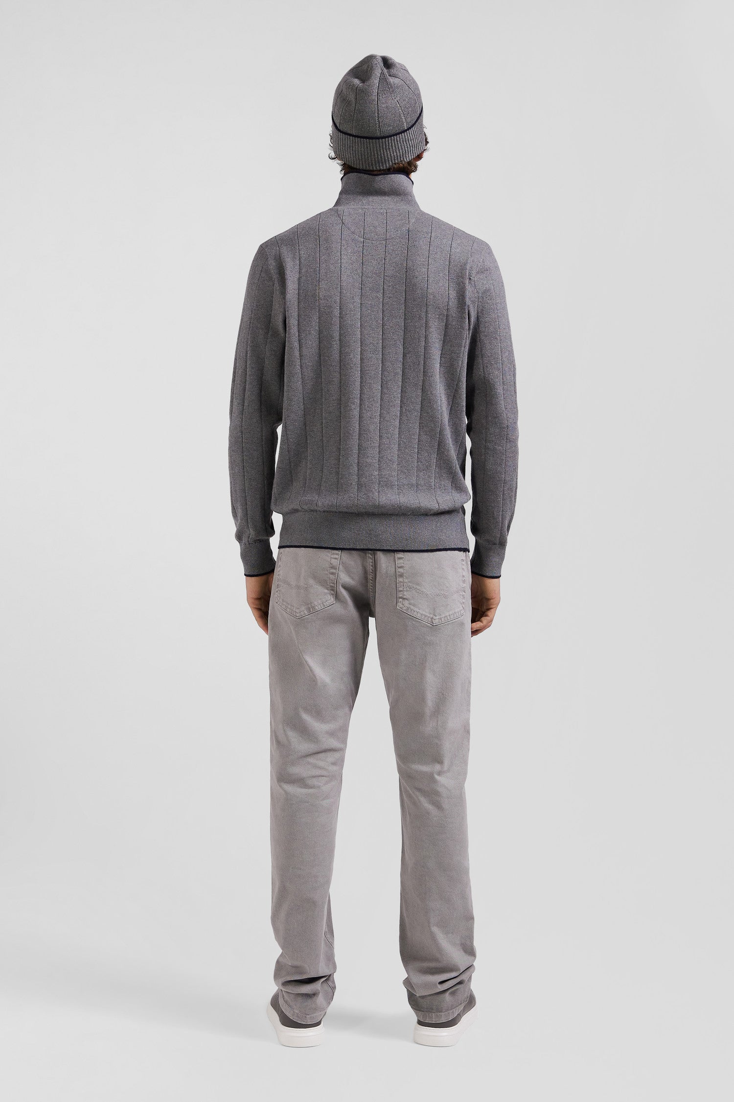 Regular grey stretch cotton 5-pocket trousers