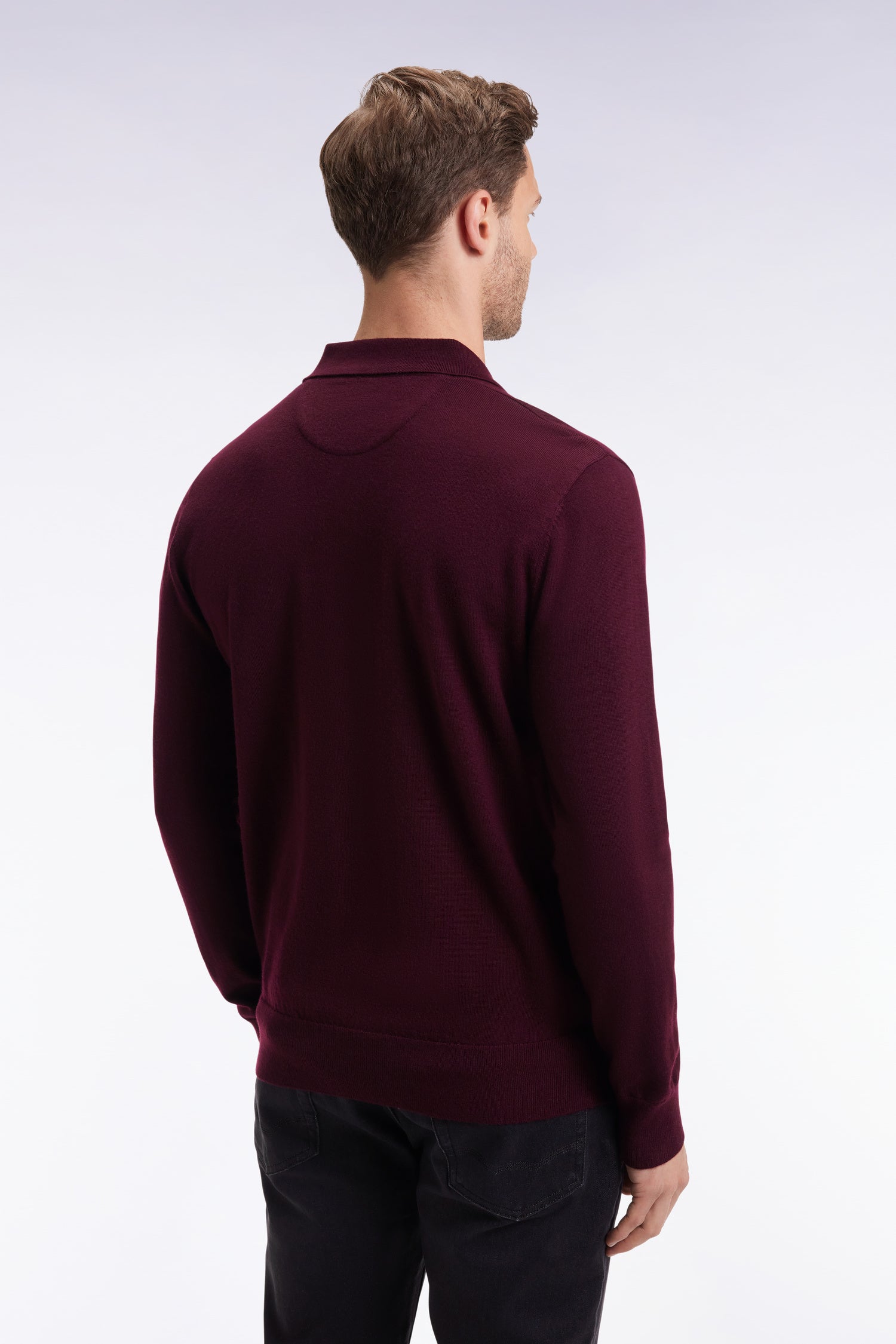Jersey-neck sweater in burgundy merino wool