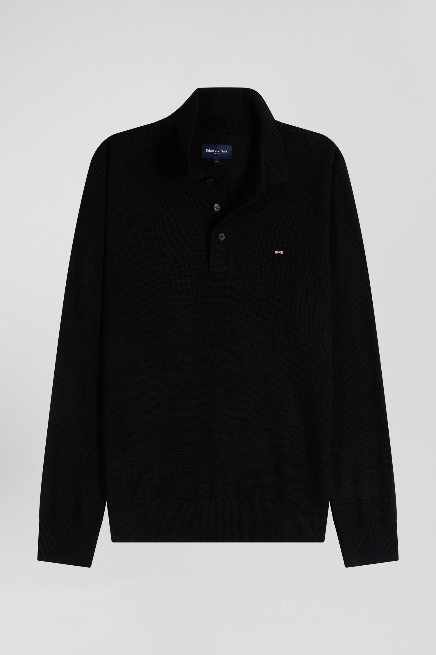 Regular black wool jumper with rugby shirt collar