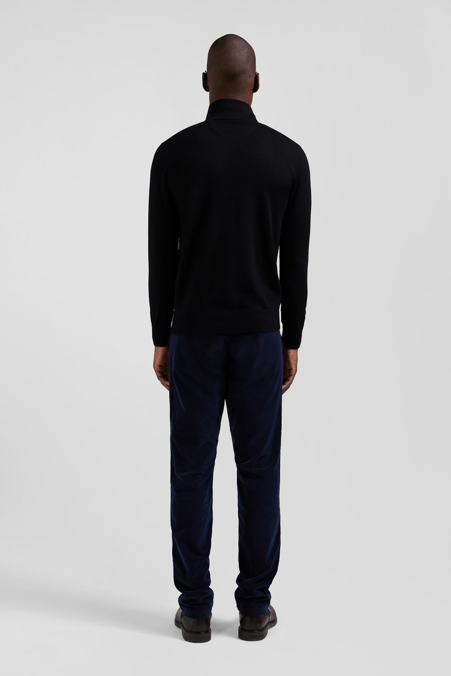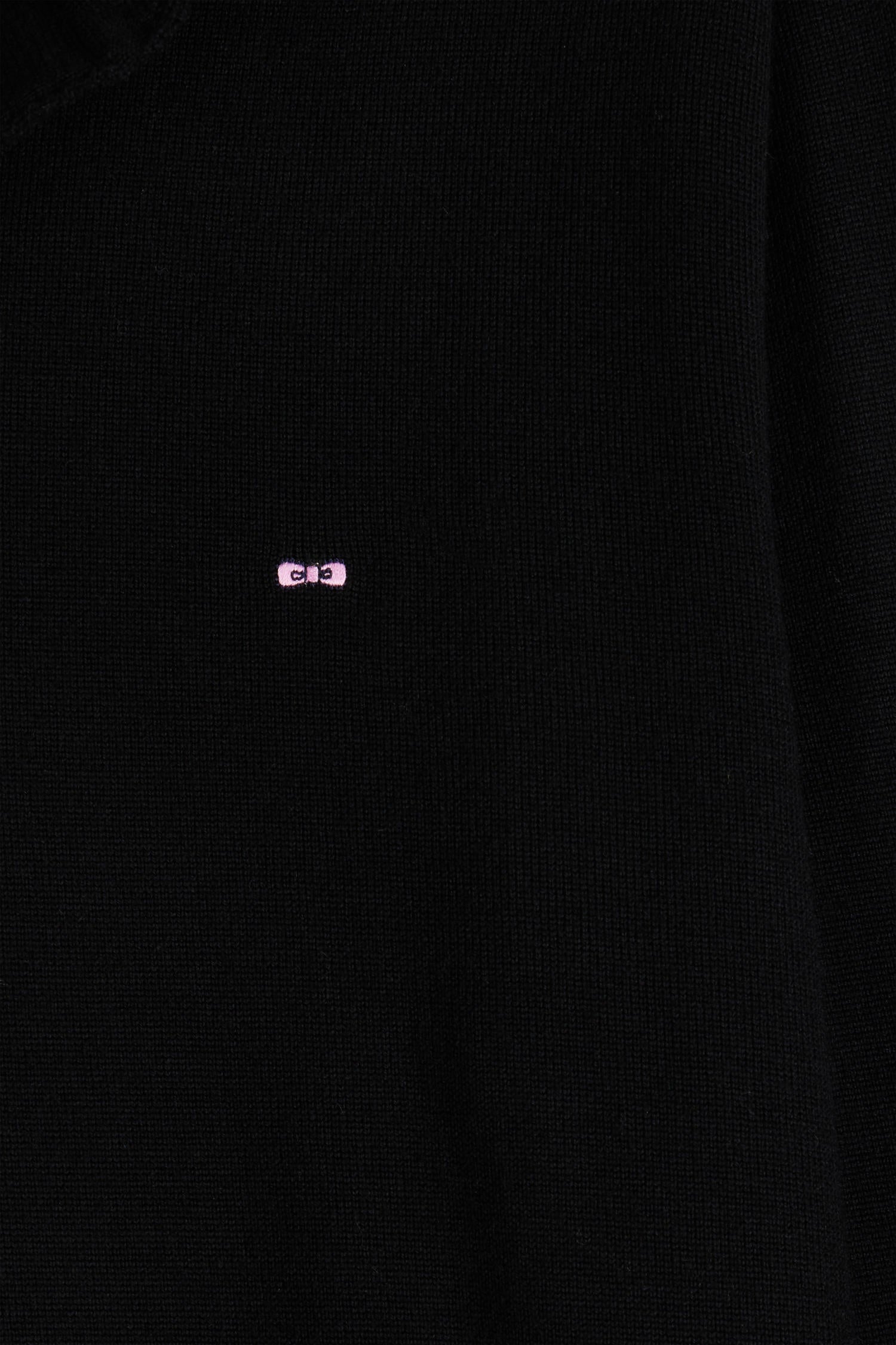 Choose our wool jersey-neck sweater, offering a straight Regular fit and available in several timeless colors. Each piece is enhanced by bow-tie embroidery on the chest, adding an elegant, discreet signature to this revisited masculine classic.