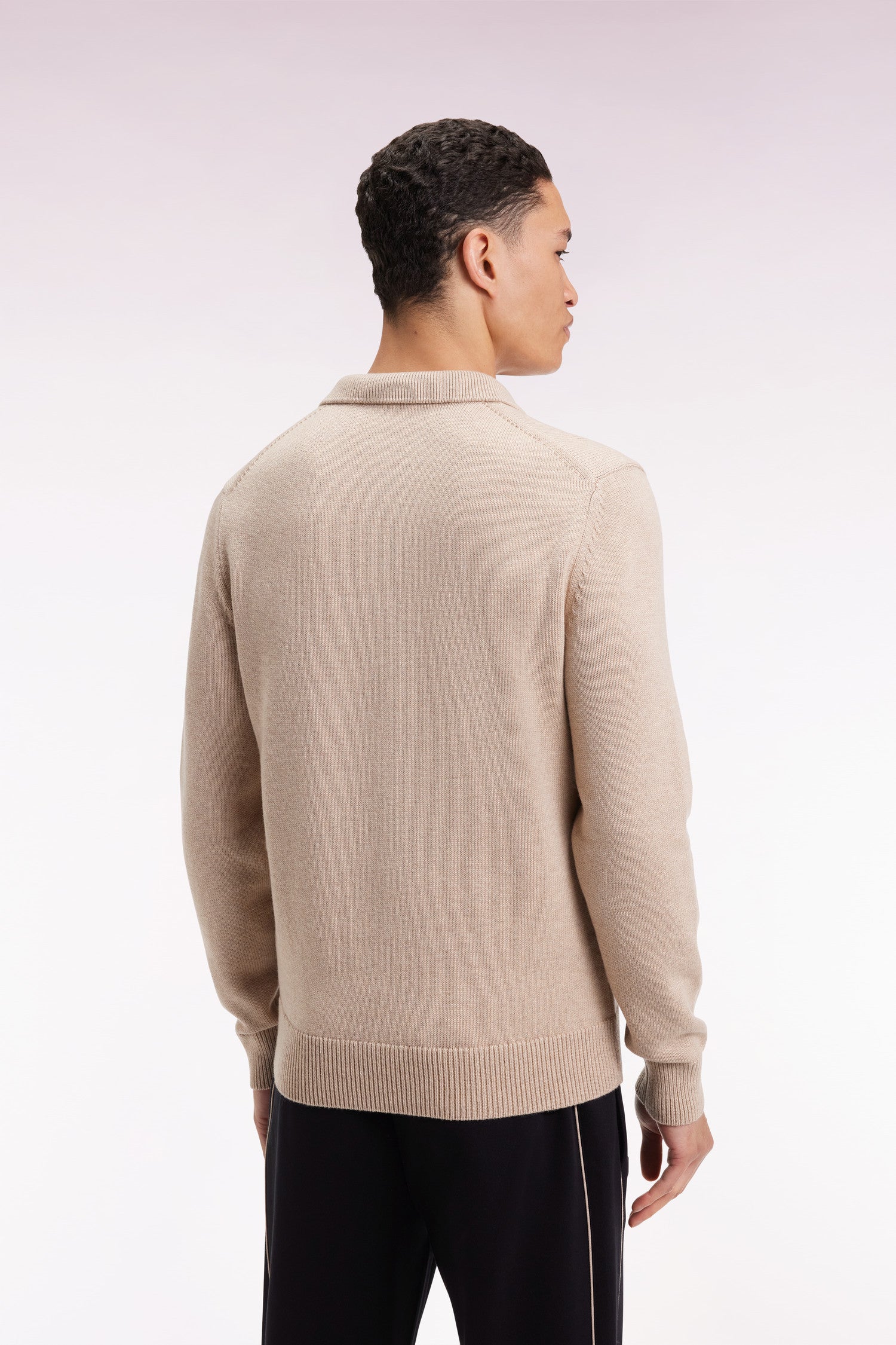 Inspired by the rugby wardrobe, designed for the city. A blend of casual elegance and sport-chic heritage, this jersey-neck sweater is crafted from a precious blend of wool and cotton, in a thick knit guaranteeing softness, warmth and breathability. Its straight cut and meticulous finishing touches, such as the 2-button placket and bow-tie embroidery on the chest, make it a mainstay of the Eden Park wardrobe. Available in beige, gray or navy to suit all tastes.