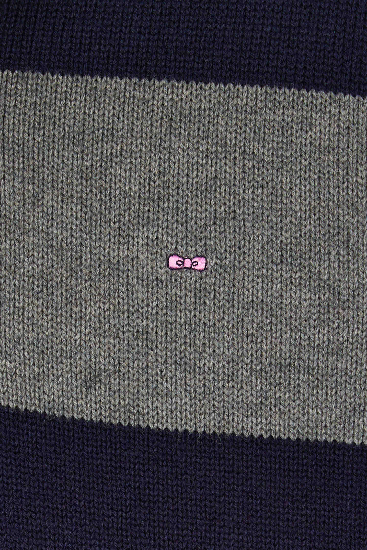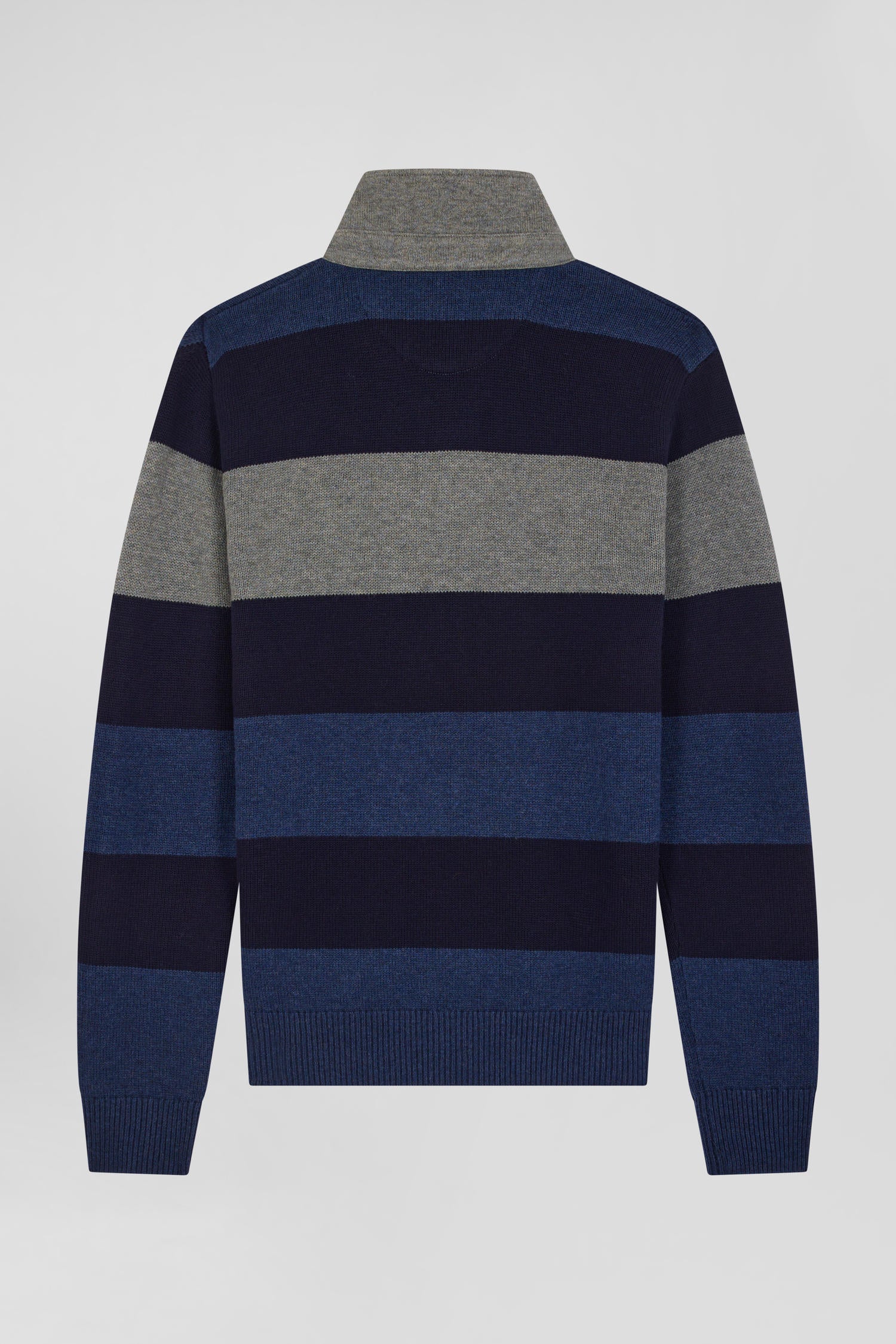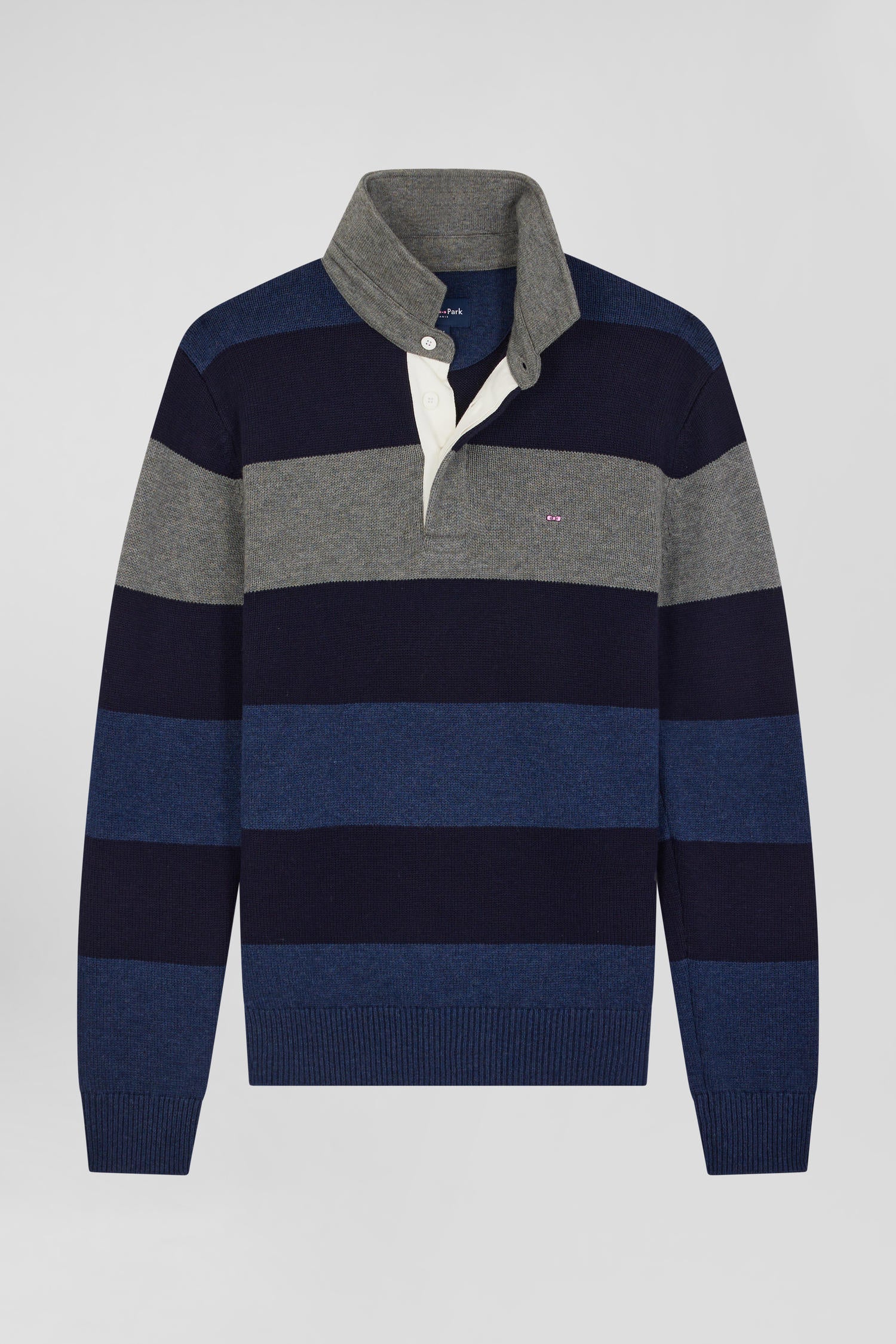 Regular navy blue striped wool and cotton jumper with rugby shirt collar