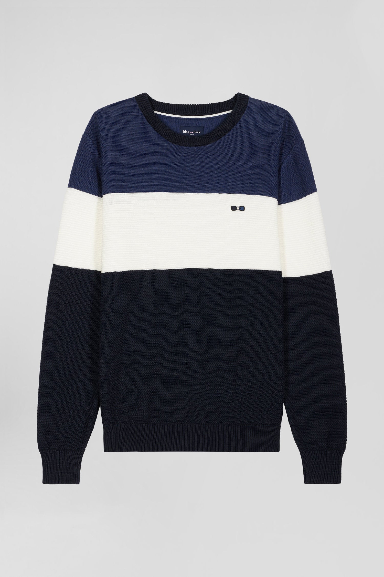 Regular navy and blue cotton crew neck jumper with knit patterns