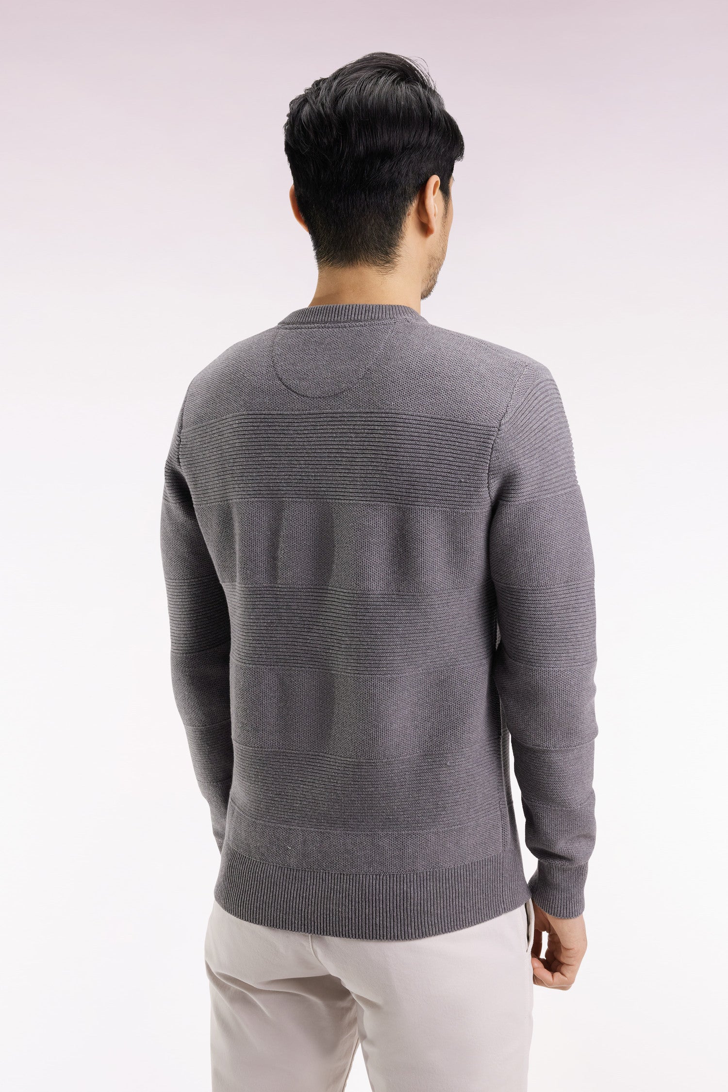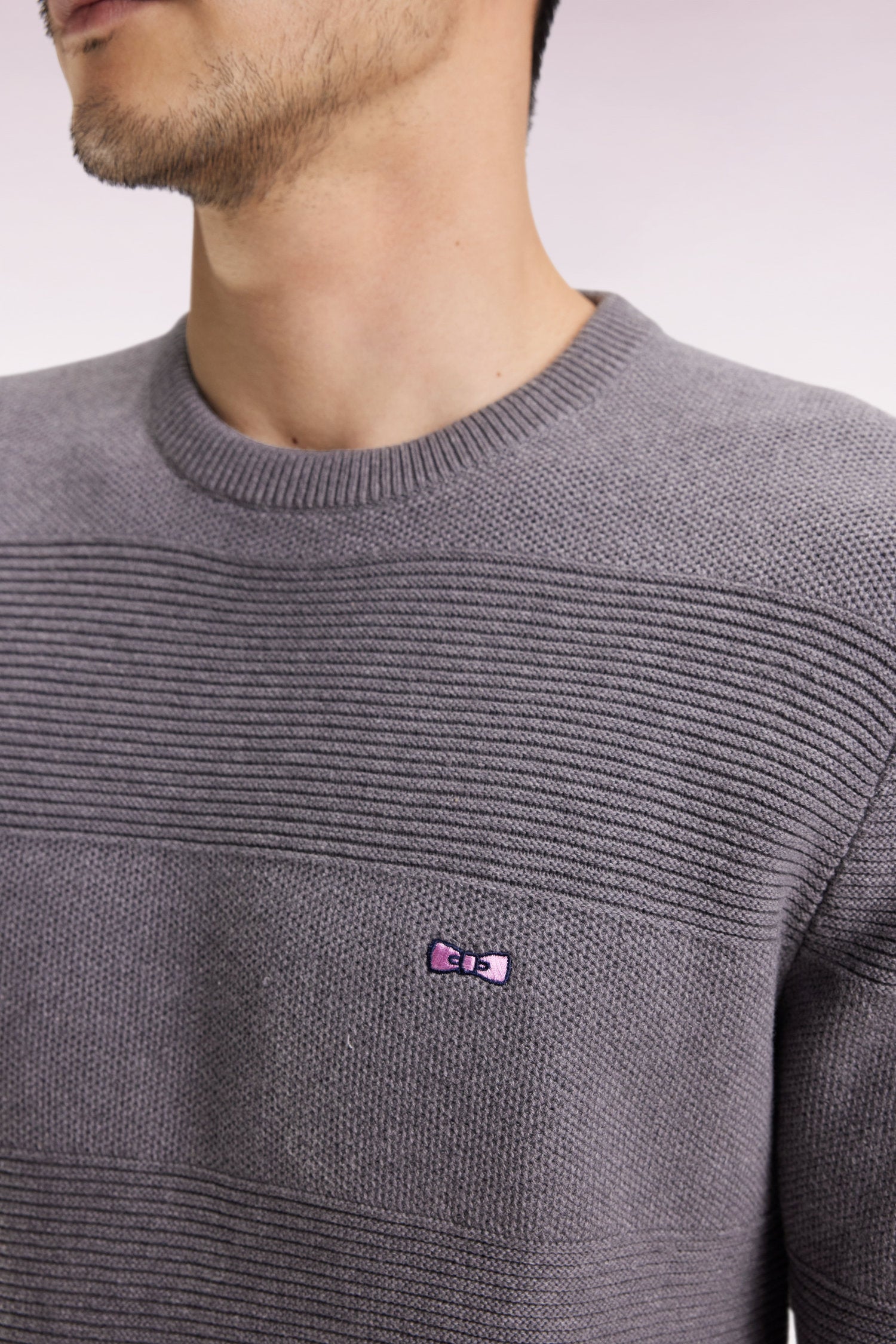 With its alternating ribbed stitch and honeycomb knit, this men's round-neck sweater in pure cotton revisits rugby stripes in a subtly textured version that pays tribute to the expertise of the company's workshops. The straight cut, bow-tie embroidery and meticulous finishing touches, such as the striped half-moon, make it an Eden Park wardrobe essential: a chic, timeless synthesis of our sporting heritage and our French Flair sense of masculine elegance. This model is available in 4 colors