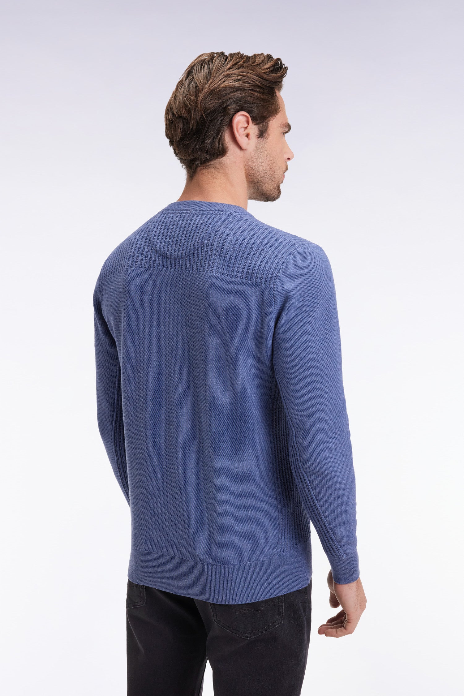 Knitted in honeycomb-stitch cotton for a lightweight, textured effect, this men's sweater features ribbed detailing on the side, shoulders and undersleeves. Comfortable and versatile, this round-neck model is available in a range of classic colors. An essential to wear season after season