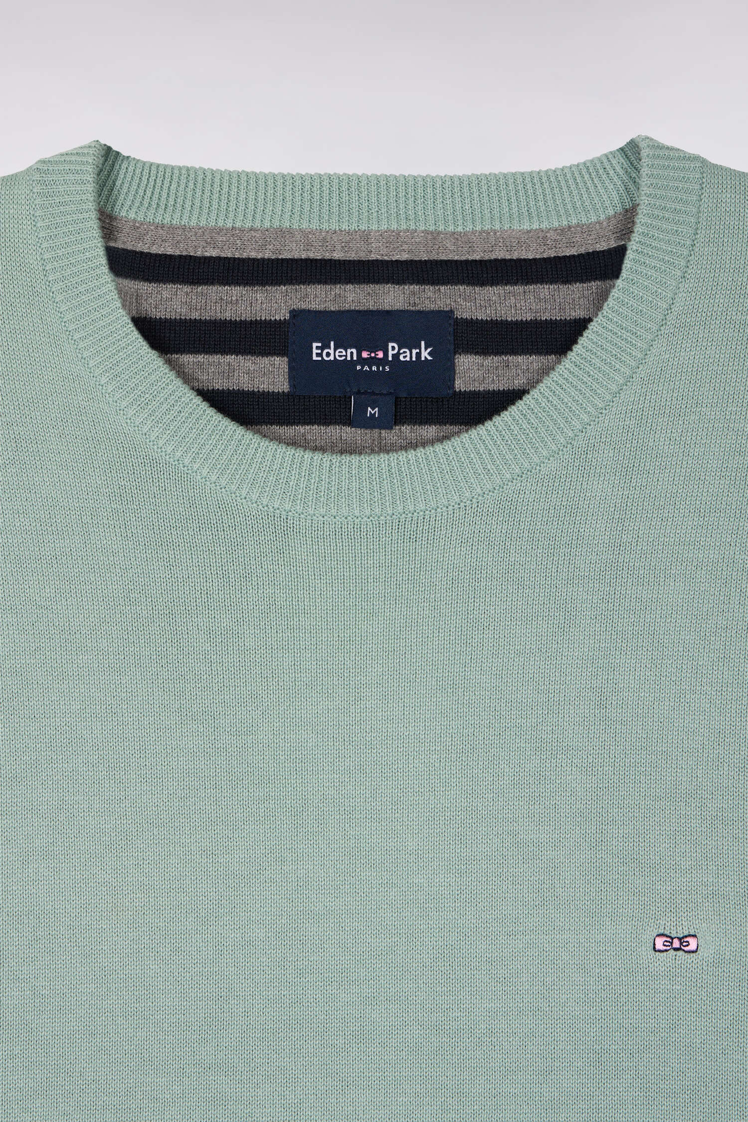Ce pull col rond tricoté en coton pur séduit par son alliance d'élégance et de confort. Léger et respirant, ce modèle est parfait pour l'entrée de saison, s’associant aussi bien à un chino qu’à un jean dans son coloris ciel ou vert doux. Détail discret emblématique du vestiaire de la Maison, sa Demi-lune intérieure s'habille de rayures rugby.
