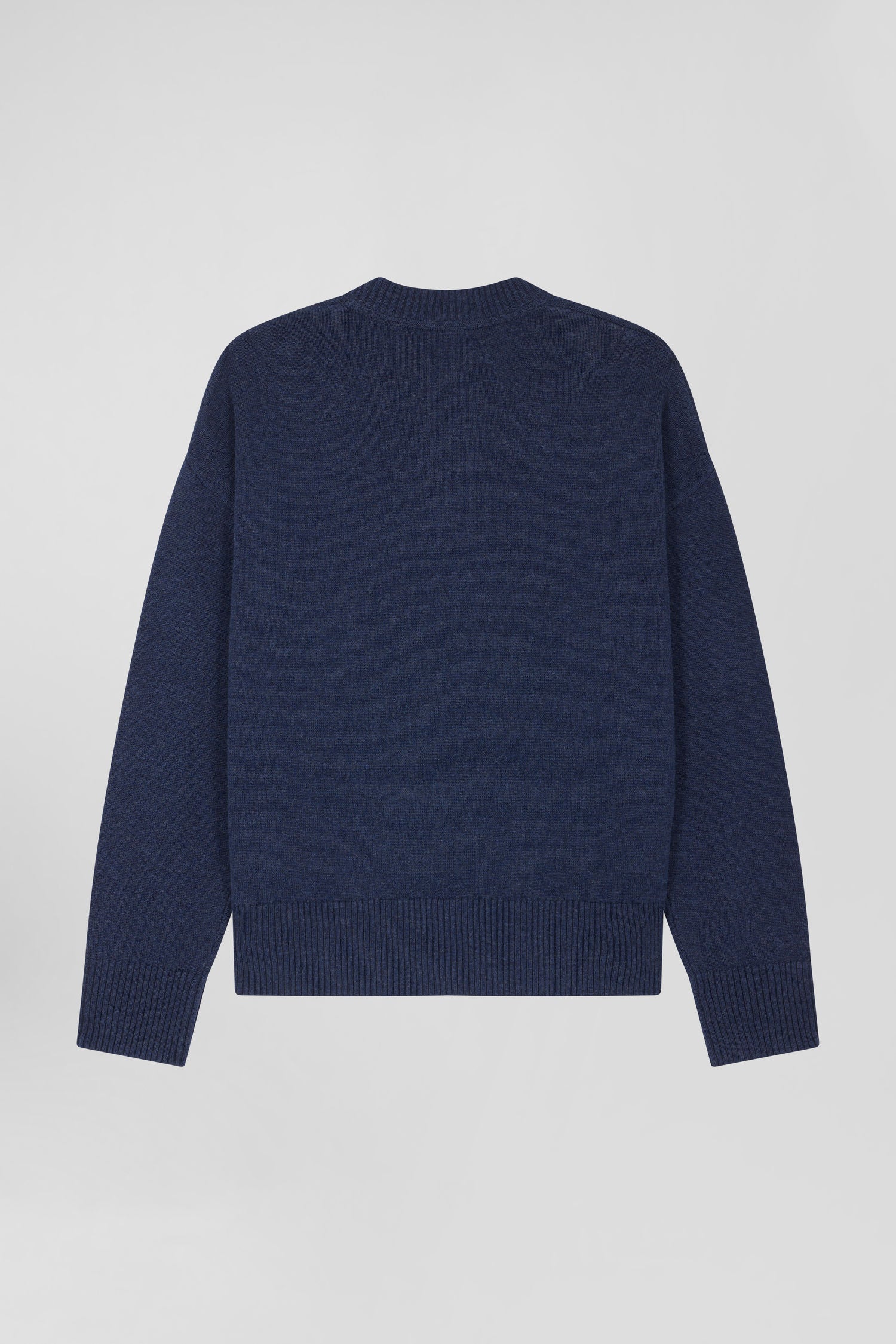 Relaxed navy wool and cotton crew neck jumper