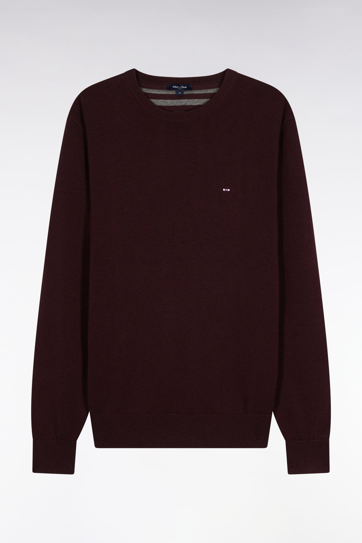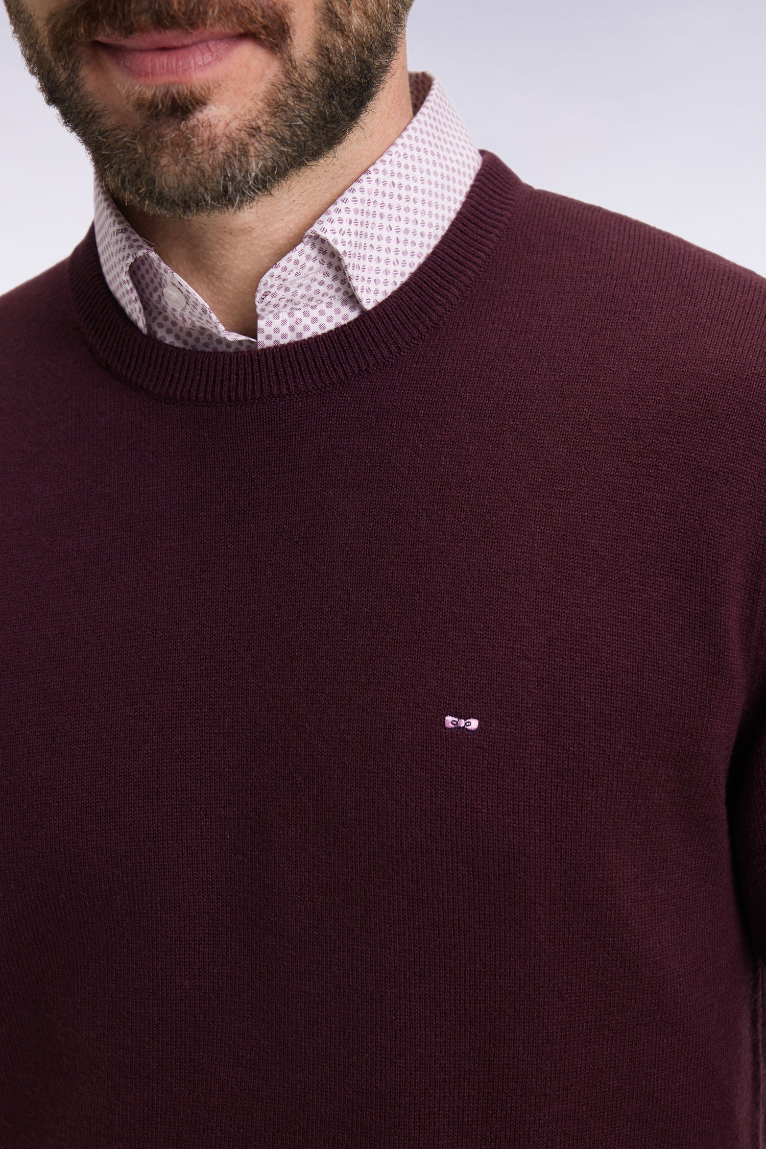 This round-neck sweater plays the timeless card with its straight cut and wool/cotton blend knit. A bowtie embroidery on the chest and a rugby-striped half-moon inside discreetly mark its place in the Eden Park wardrobe. Easy to match with a shirt or T-shirt, this sweater comes in a rich palette of colors for all your seasonal silhouettes.