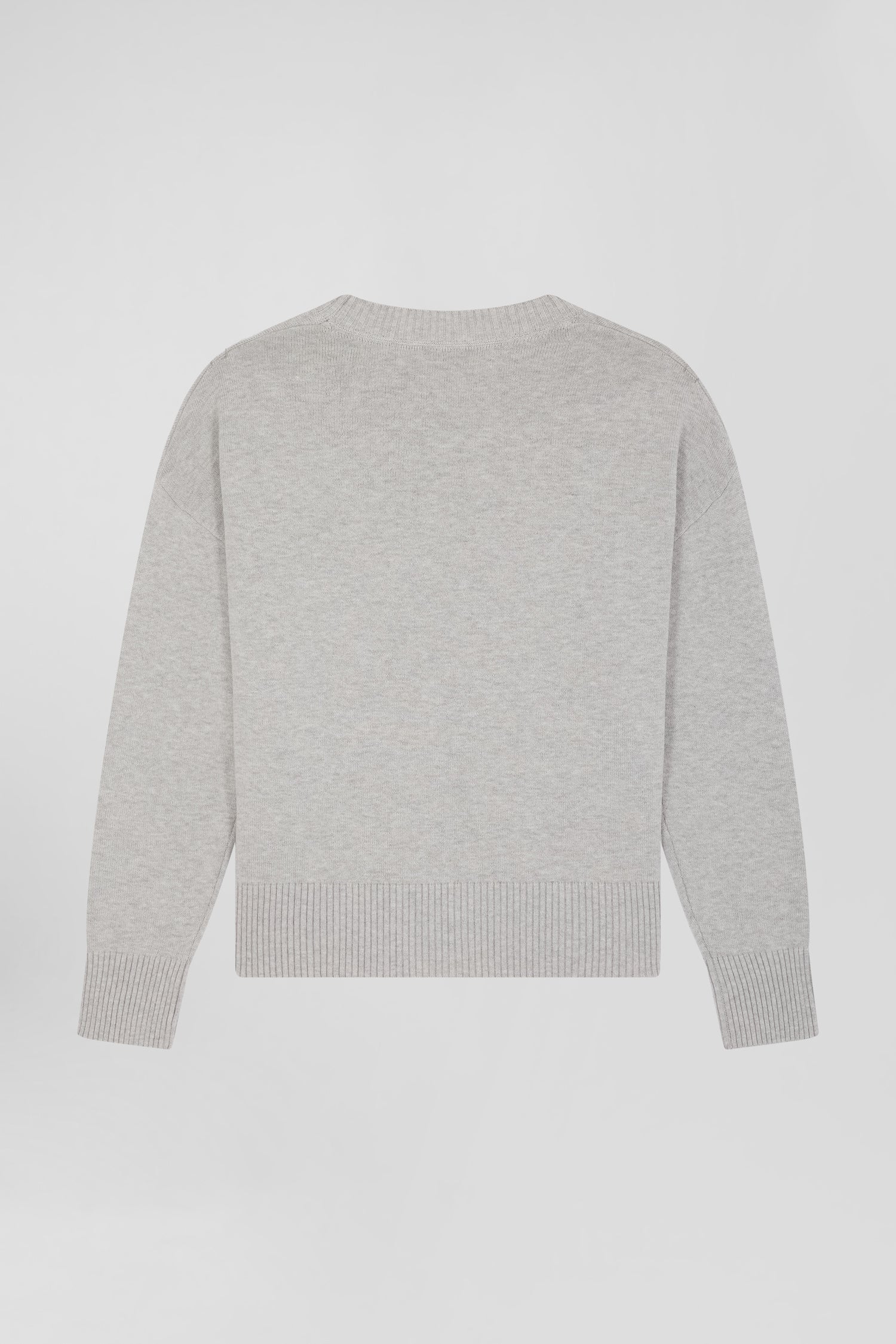Our elegant round-neck sweater is designed to combine style and comfort. Crafted from a rich blend of wool and cotton, this sweater benefits from the natural properties of these fibers, offering warmth, softness and breathability. The Relaxed cut adds a touch of casual chic, while the discreet bowtie logo embroidery adds a subtle signature to this women's sweater. Available in a range of colors, this timeless piece is a perfect choice for those who value quality and durability in their wardrobe.