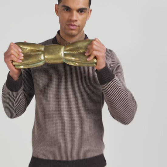 This men's round-neck sweater features contrasting knitwear with a tricolor effect. Its English rib knit gives this winter sweater a touch of originality. Perfect for adding a unique visual dimension to your outfit, this wool and cotton sweater in our timeless colors combines comfort and style with elegance.