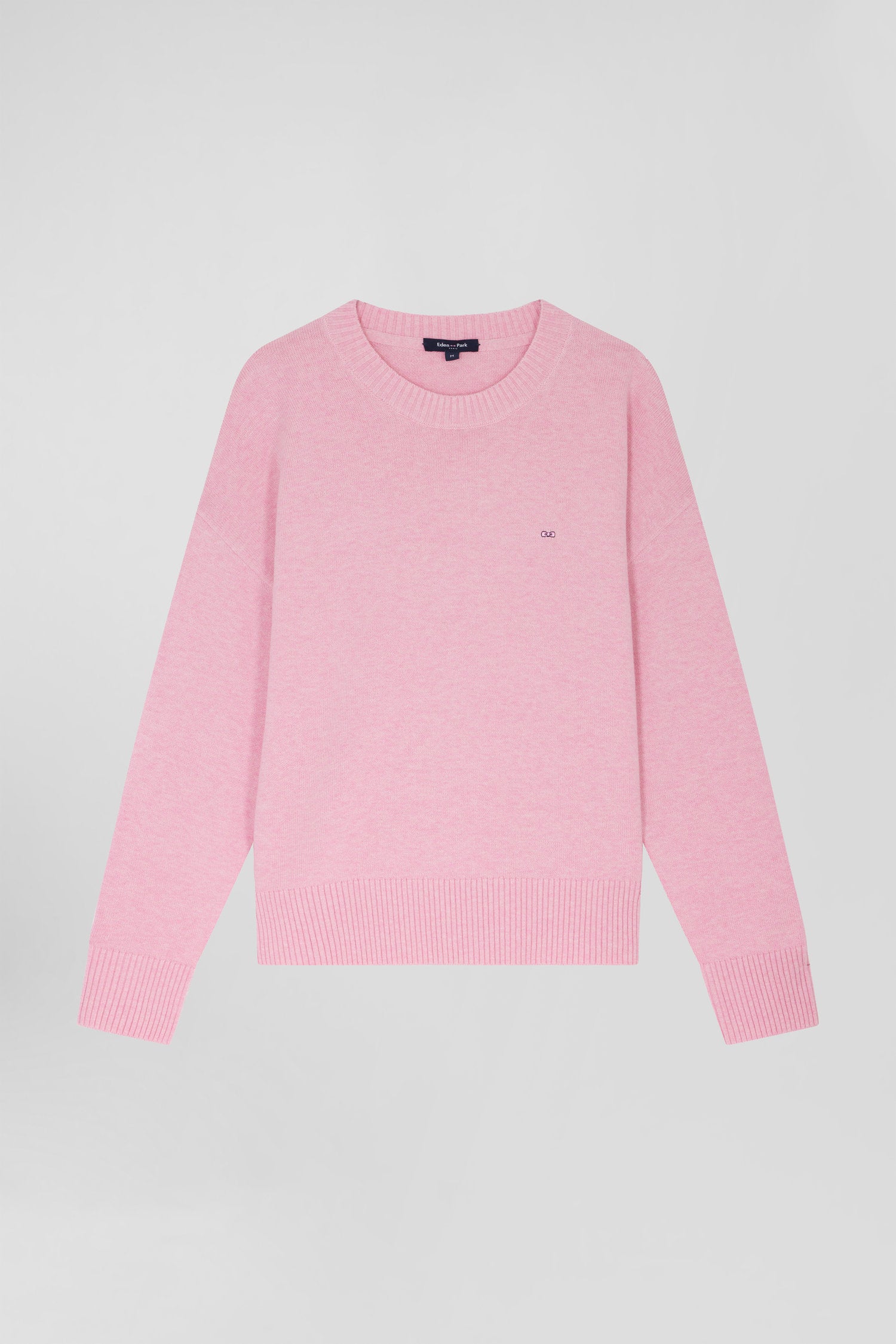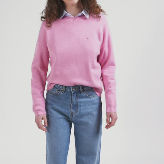 Our elegant round-neck sweater is designed to combine style and comfort. Crafted from a rich blend of wool and cotton, this sweater benefits from the natural properties of these fibers, offering warmth, softness and breathability. The Relaxed cut adds a touch of casual chic, while the discreet bowtie logo embroidery adds a subtle signature to this women's sweater. Available in a range of colors, this timeless piece is a perfect choice for those who value quality and durability in their wardrobe.