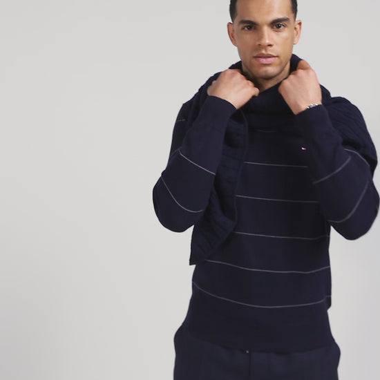 Regular navy striped cotton and cashmere crew neck jumper