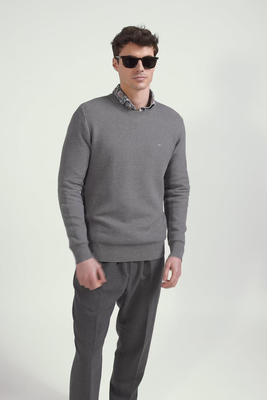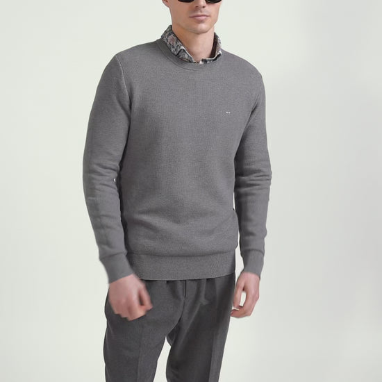 Regular grey cotton crew neck jumper