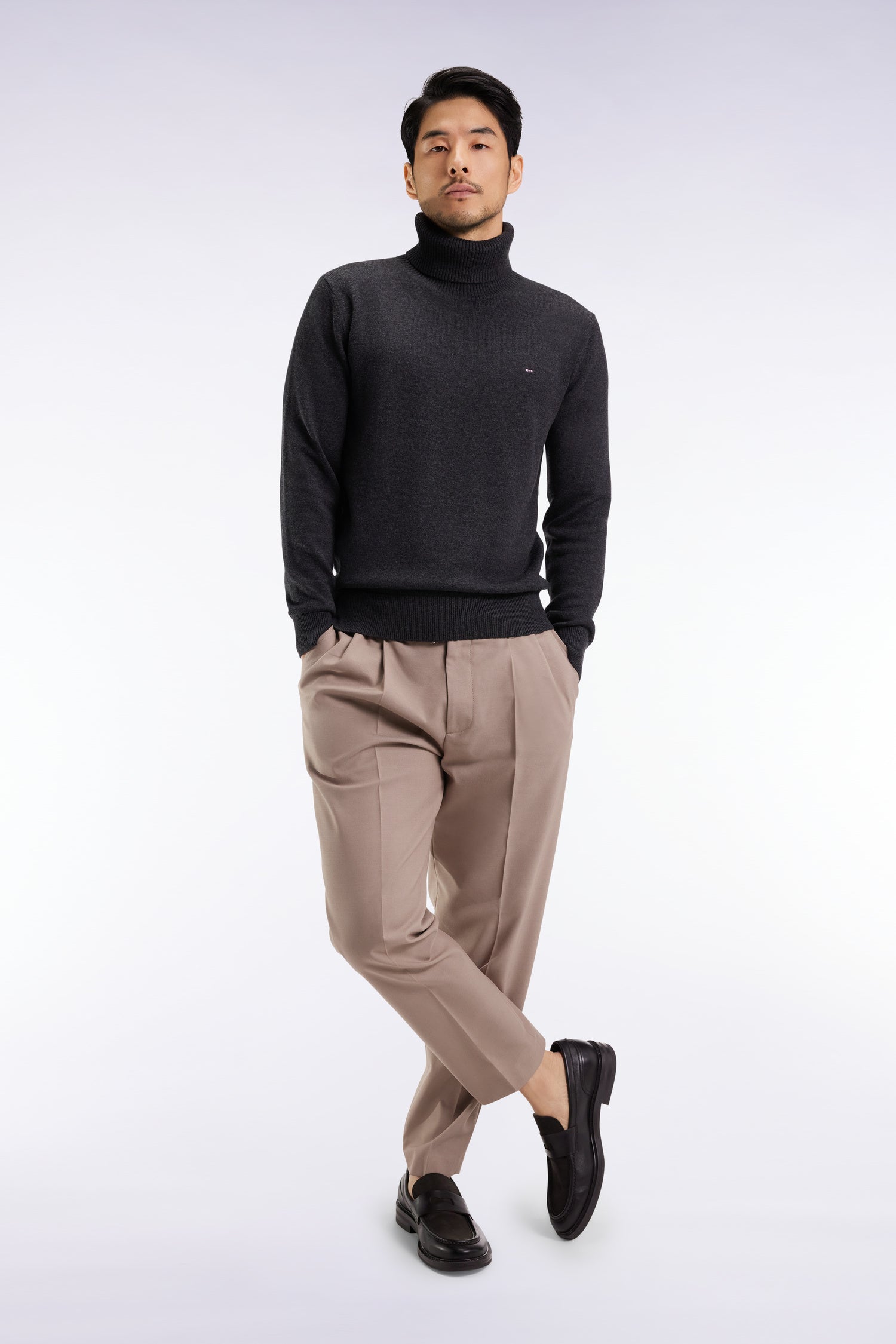 Dark grey wool and cotton turtleneck sweater