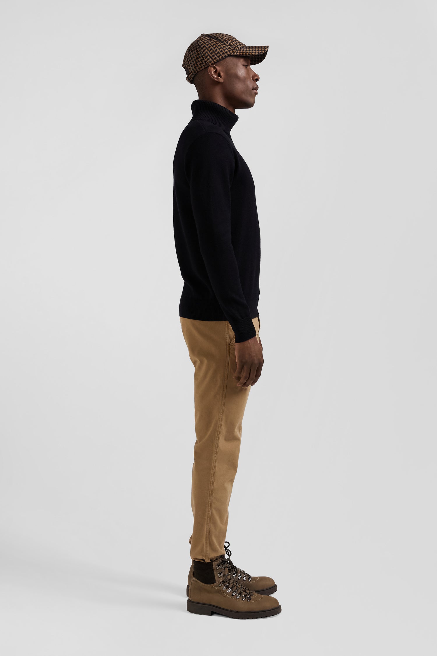 Warmth and style meet in this turtleneck sweater, a timeless essential for any wardrobe. Designed in a noble blend of wool and cotton, it offers softness and comfort all day long. The subtle contrast of its striped inner half-moon adds a discreet, elegant signature to this turtleneck offered in a wide range of colors.