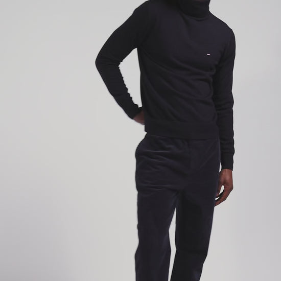 Regular navy blue merino wool turtleneck jumper