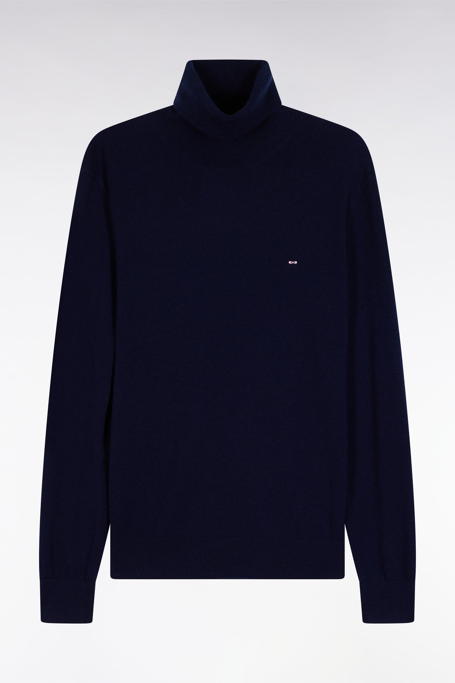 A timeless winter wardrobe staple, this turtleneck sweater is distinguished by its fine cashmere and virgin wool knit, a perfect blend of softness and warmth. Its straight cut, wrap-around collar and bow-tie embroidery on the chest make it a sober, elegant piece. Available in black, gray or navy