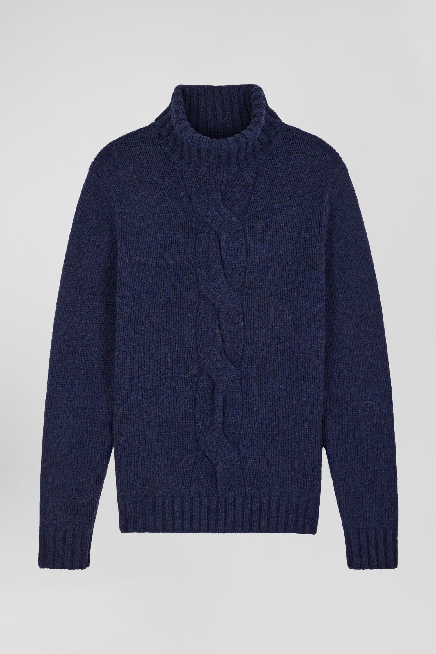 Regular navy virgin wool and recycled polyamide turtleneck jumper with 3D knitting