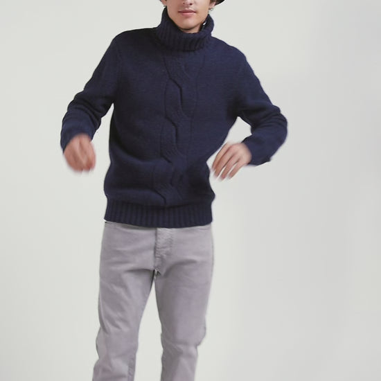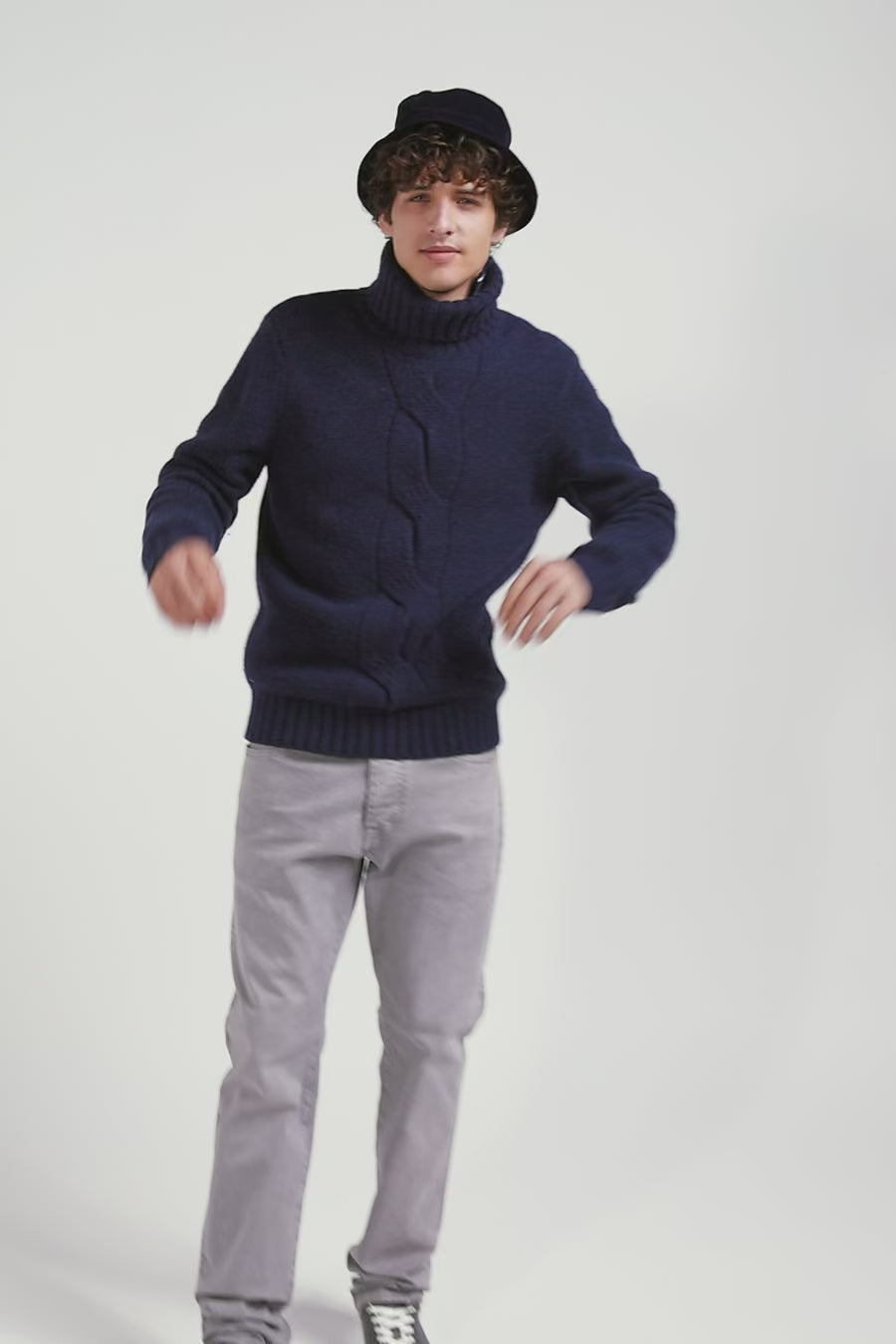 Our chunky winter turtleneck sweater is crafted from a blend of virgin wool and recycled polyamide. This model features a wide central twist that adds a touch of sophistication and texture. The oversized turtleneck for a modern look wraps gently like a scarf, offering warmth and style. Perfect for adding an elegant touch to your winter wardrobe, this sweater is offered in navy or ecru, 2 timeless colors easy to match to your wardrobe.