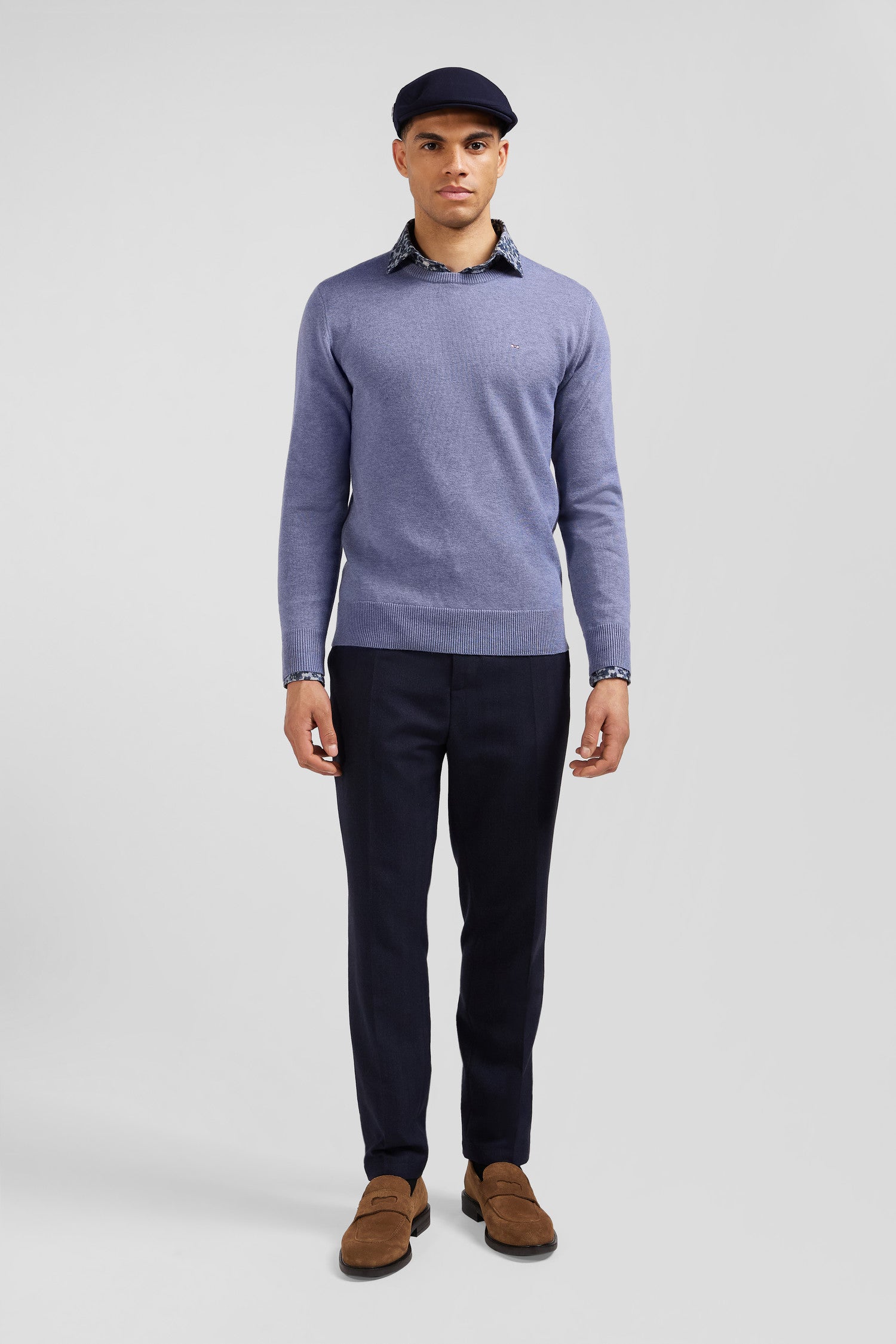 Treat yourself to a touch of everyday elegance with this round-neck sweater, offered in a wide range of colors to match your men's fall-winter wardrobe and follow your every whim. Made from a soft blend of wool and cotton, it combines comfort with timeless style. This classic sweater is the perfect complement to any outfit. Its fine knit and straight cut, with a perfect fit against the skin or over a shirt, reflect our expertise, promising quality and durability.