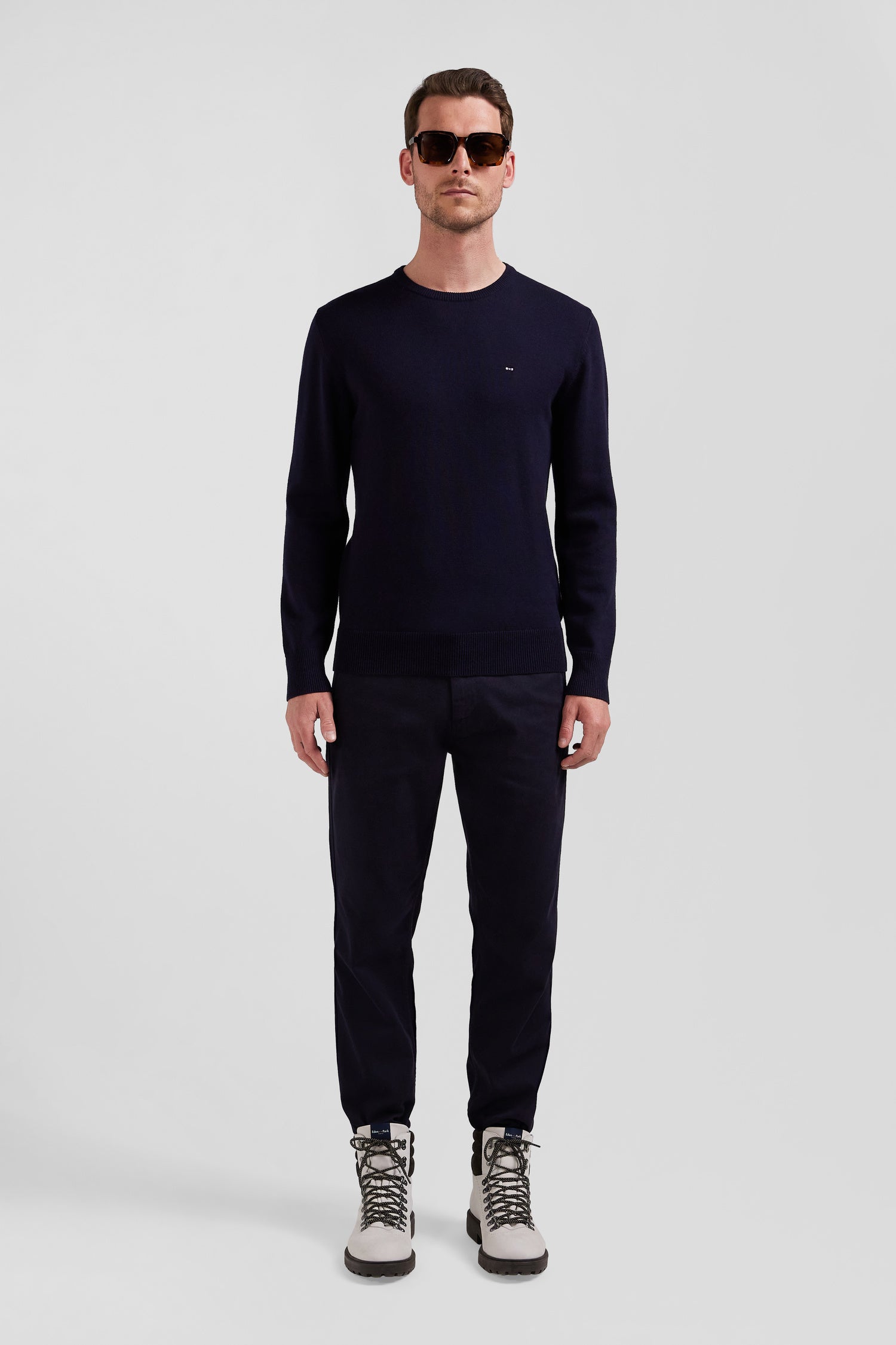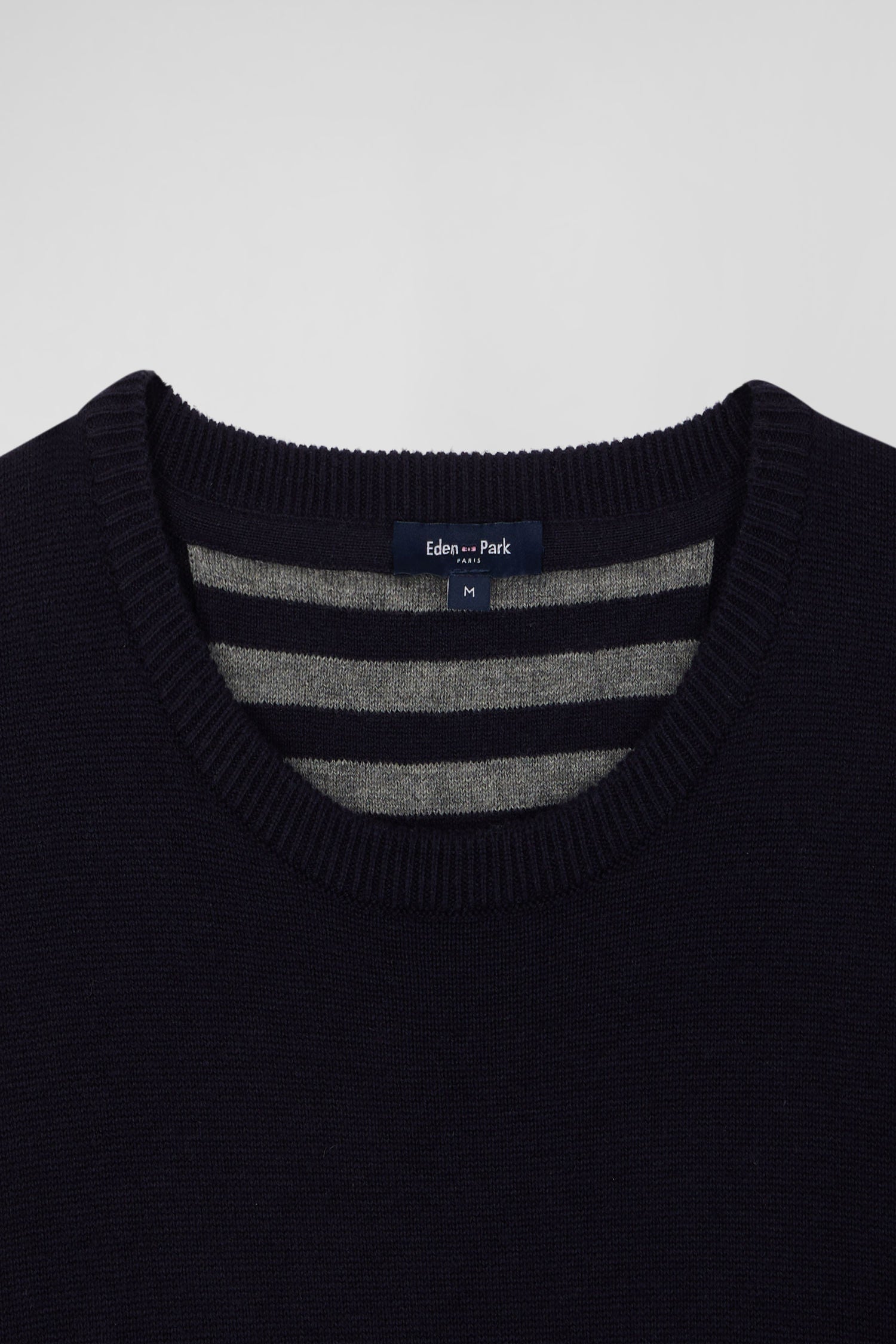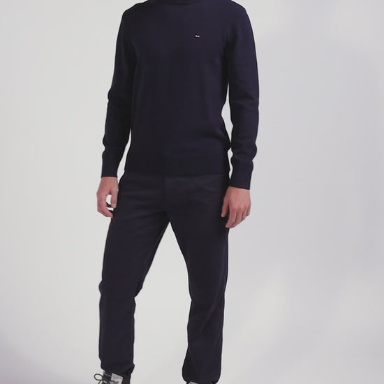 Regular navy blue wool and cotton crew neck jumper