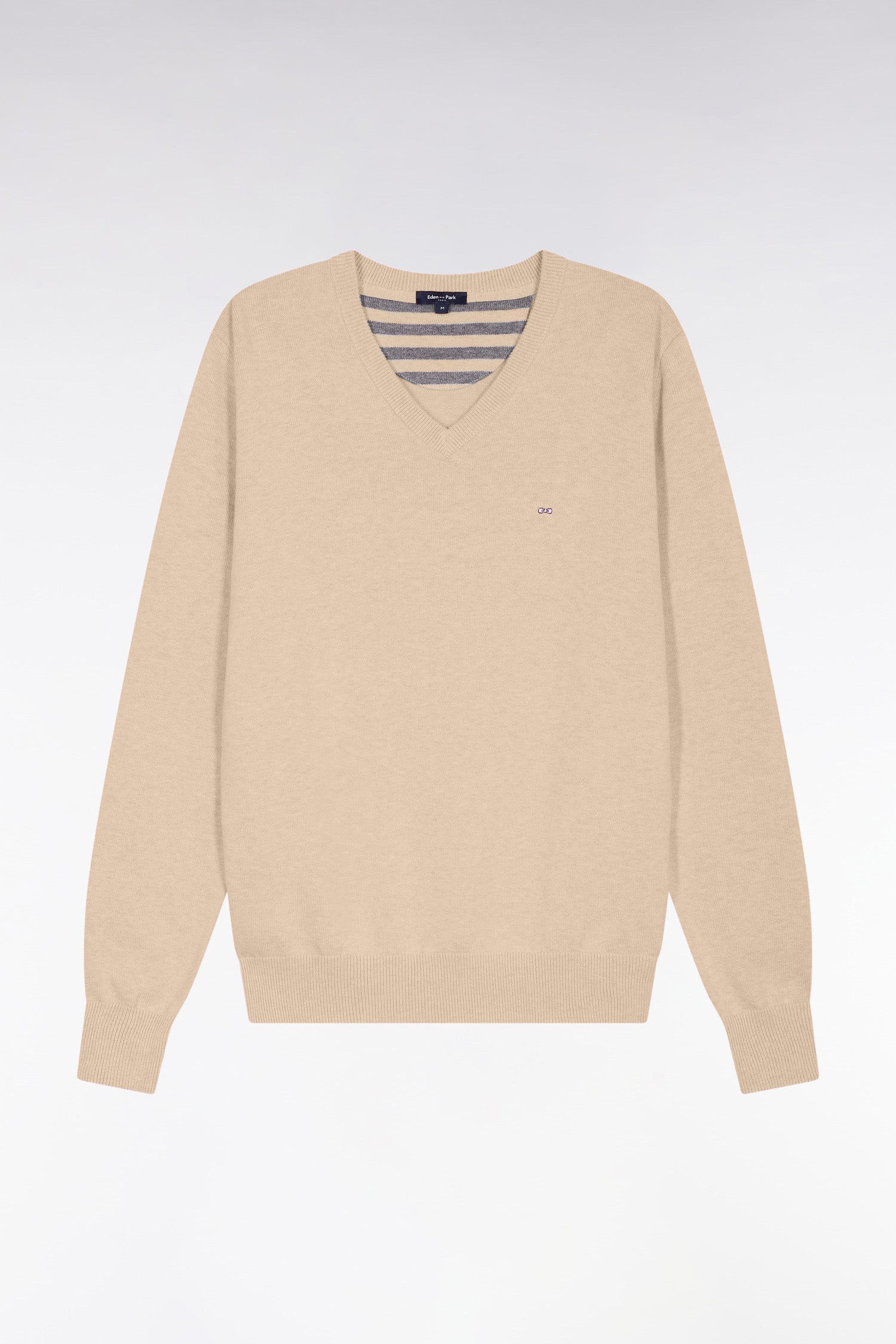 Camel wool and cotton V-neck sweater - A SHOOTER
