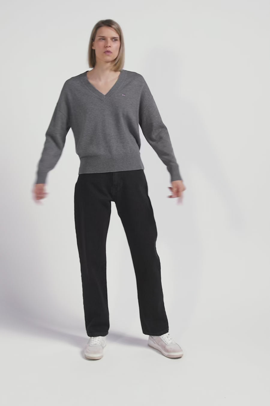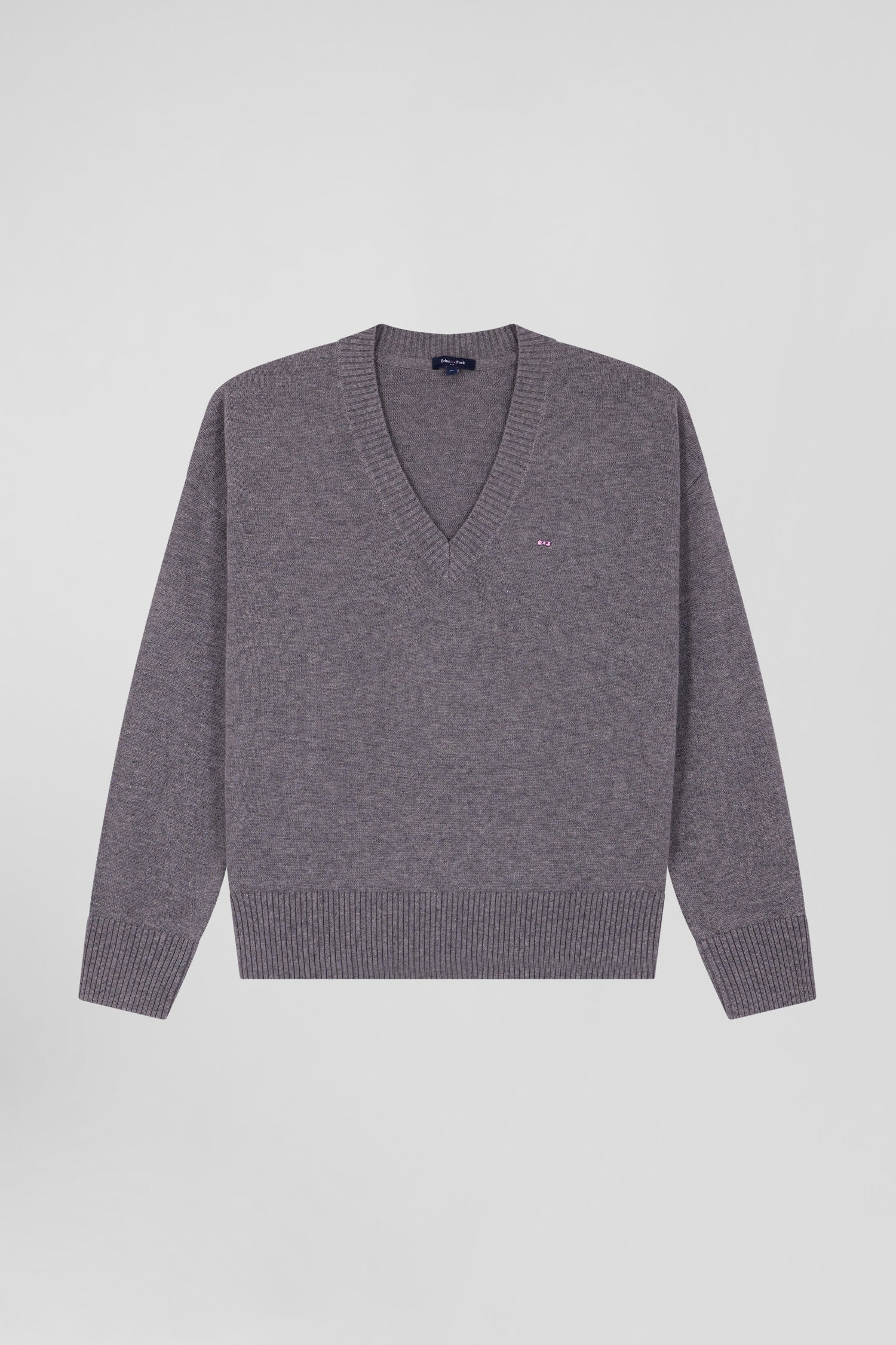 Our V-neck sweater is a timeless addition to any woman's wardrobe. Made from a soft blend of wool and cotton, natural fibers with multiple properties, this sweater offers a slightly loose Relaxed cut for optimal comfort. With its discreet embroidery of our bow tie logo, this sweater embodies the French Flair elegance of our House. Available in a range of colors, it blends easily with a variety of outfits, ideal for a chic everyday look.