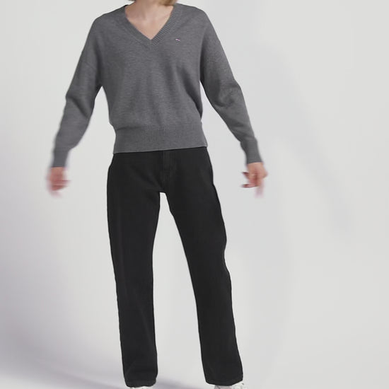 Charcoal grey wool and cotton V-neck Relaxed fit sweater
