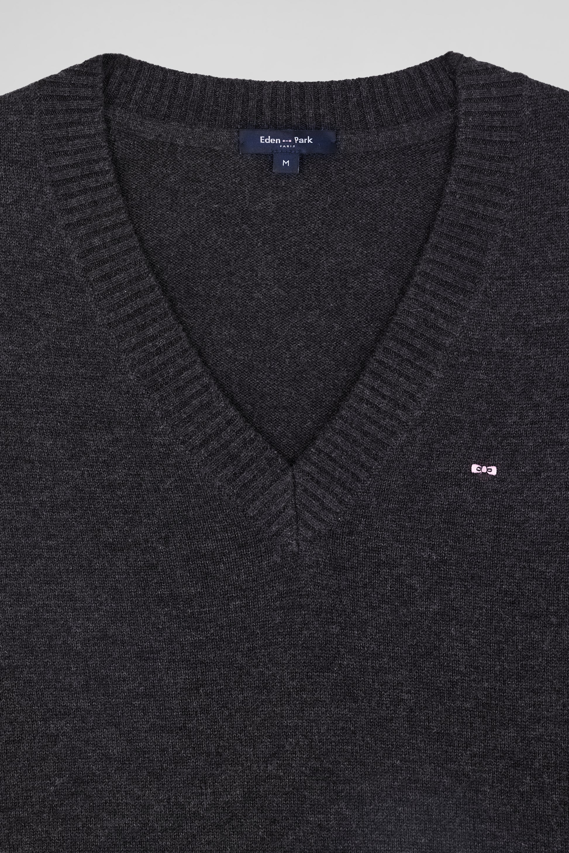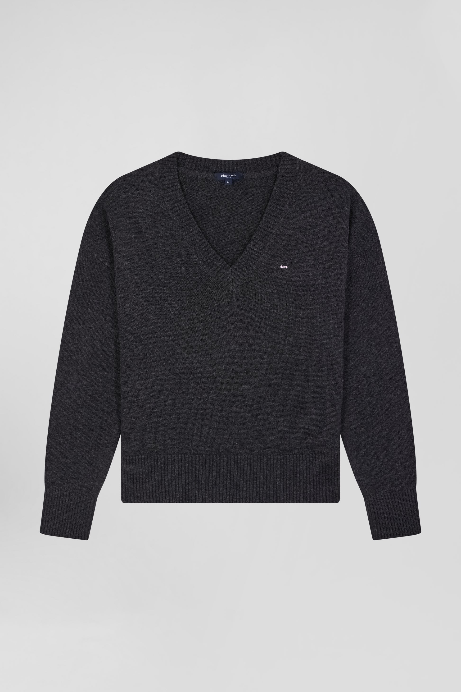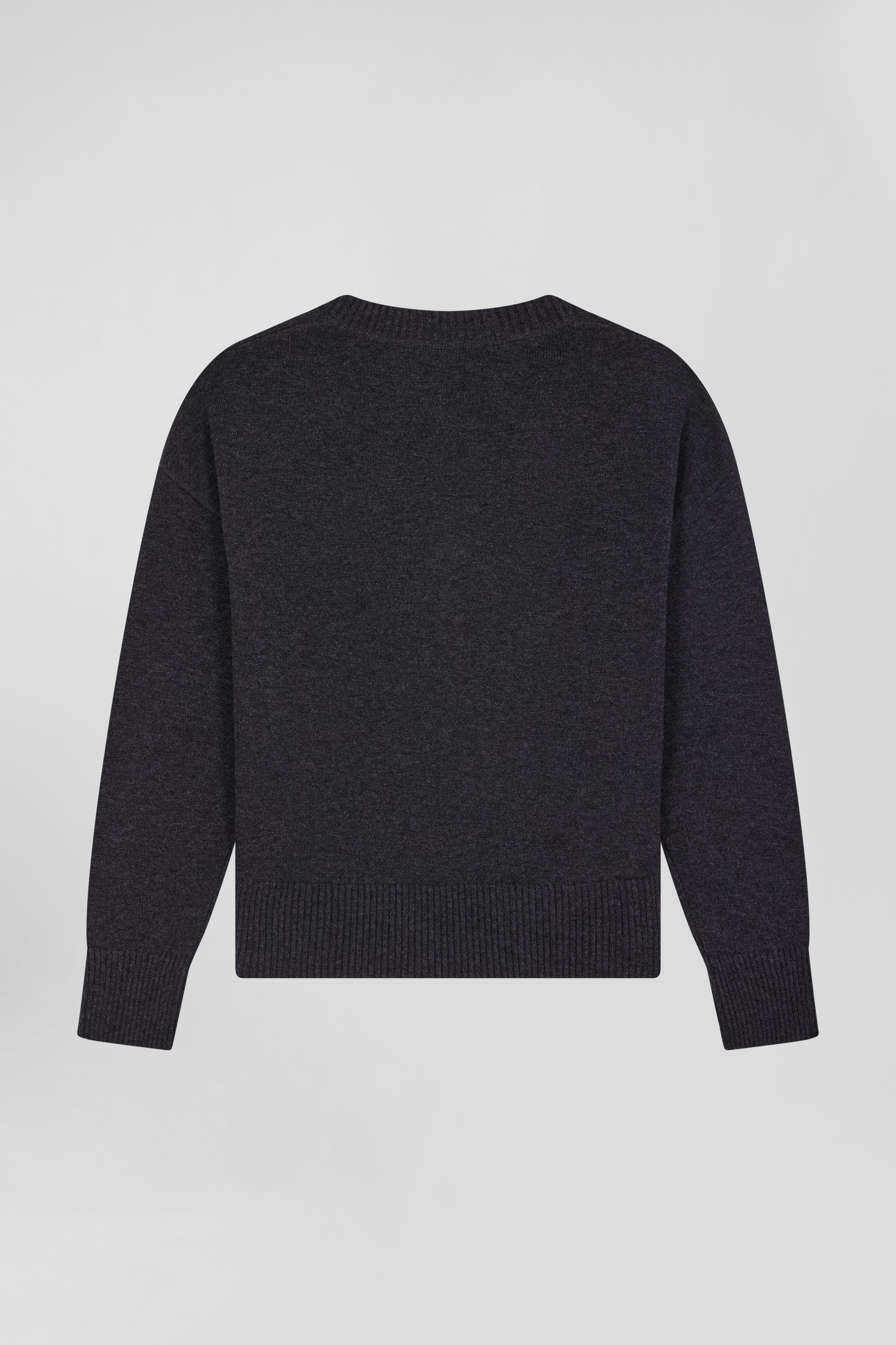 Relax dark grey mottled wool and cotton V-neck jumper