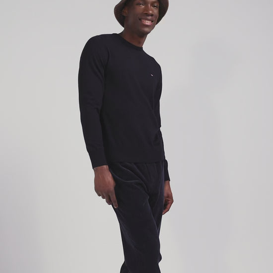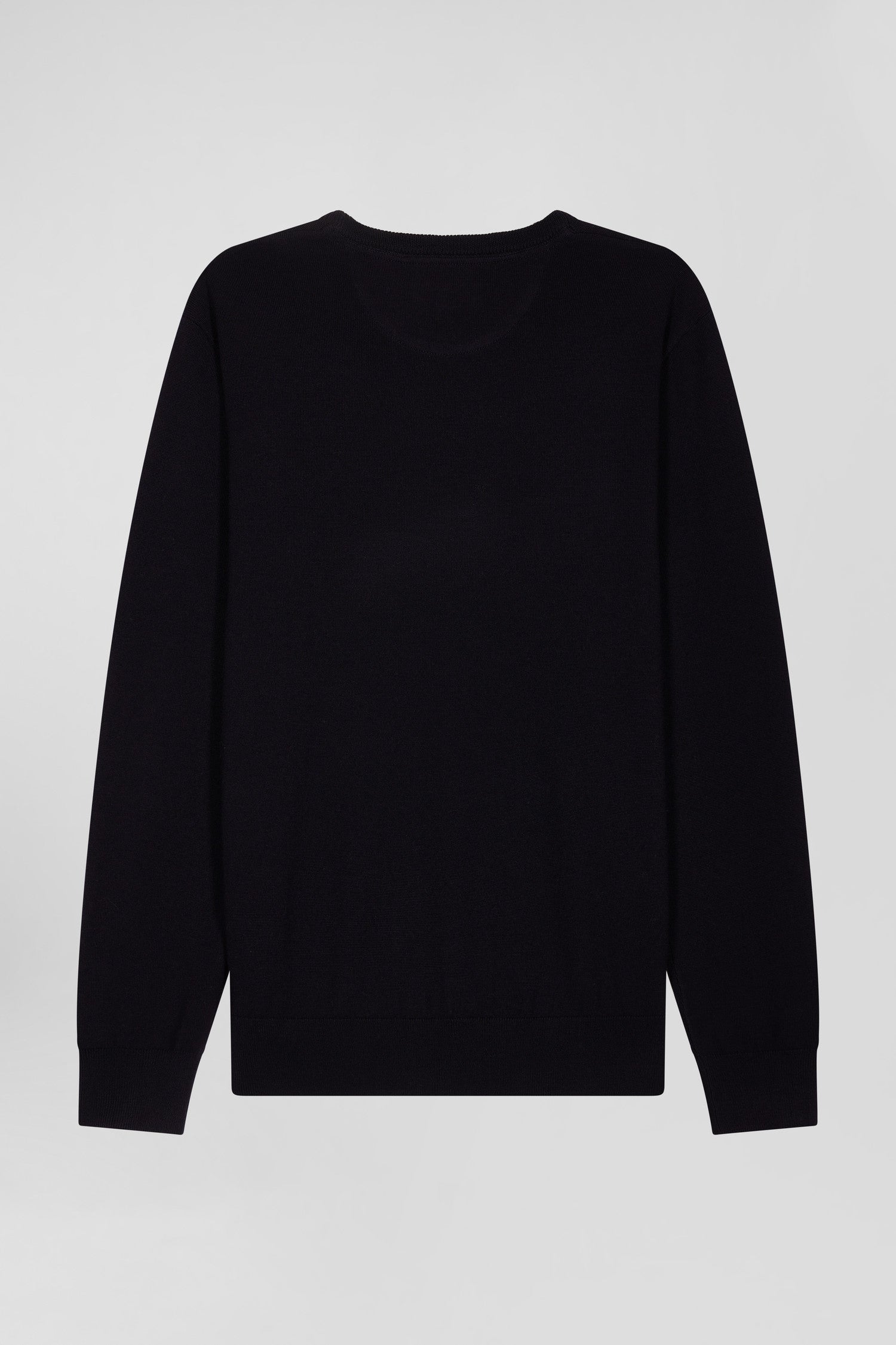 This sweater in merino wool, a noble natural fiber with many properties, is enhanced by a jersey knit for a sleek, elegant style. Featuring a round neck for a classic silhouette, this plain sweater will quickly become a wardrobe staple. Complete your outfit with this versatile piece, enhanced by our bow-tie embroidery and knitted ribbing for an impeccable finish and perfect support.