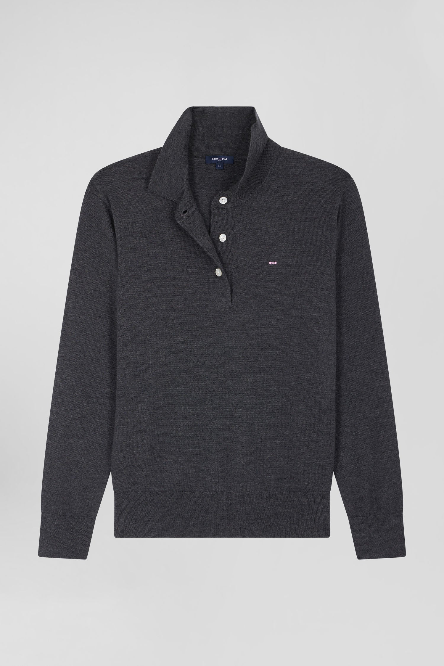 Regular anthracite grey women's wool jumper with rugby shirt collar