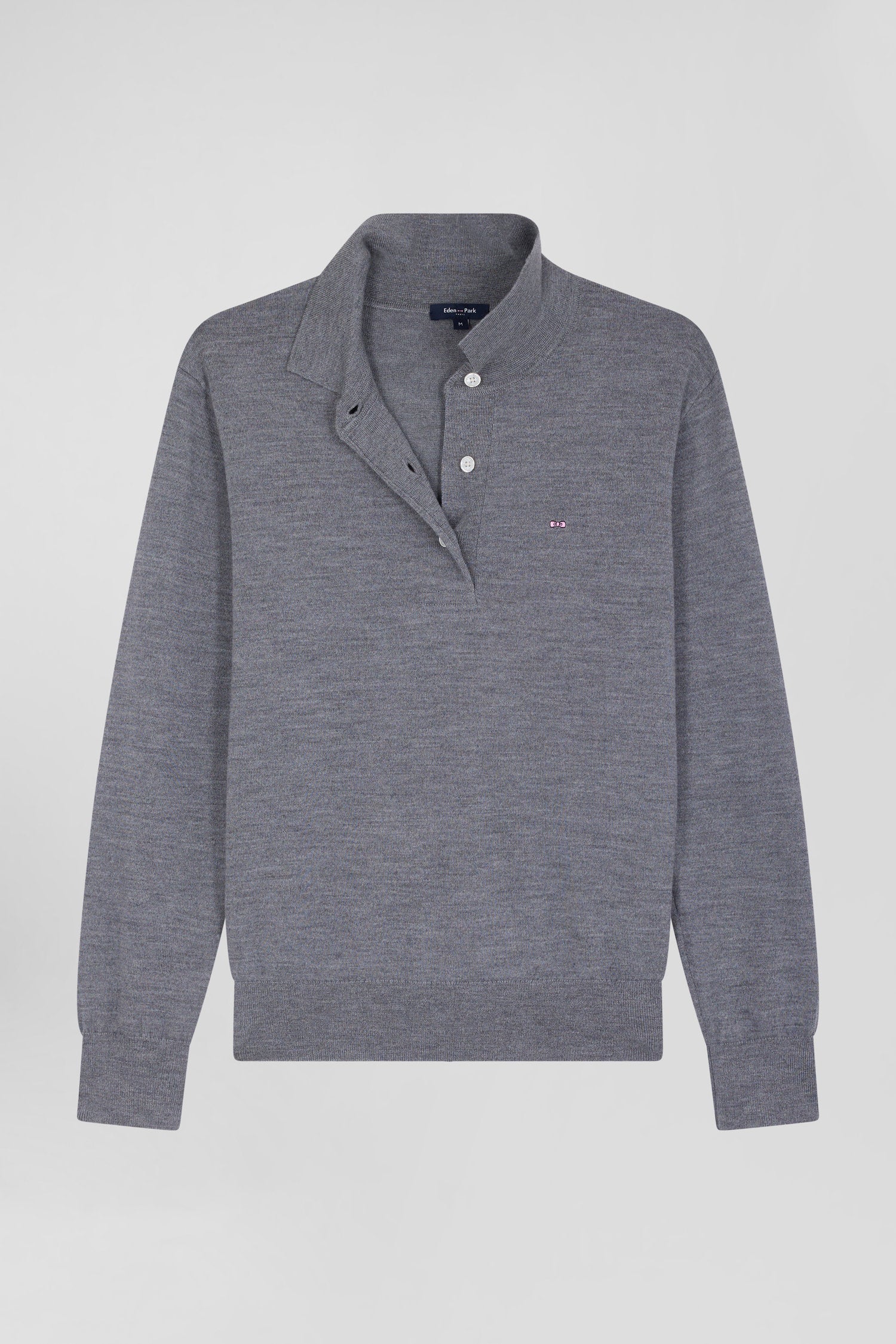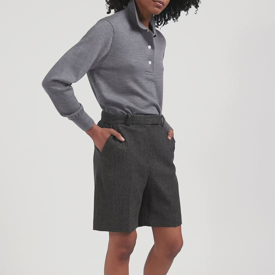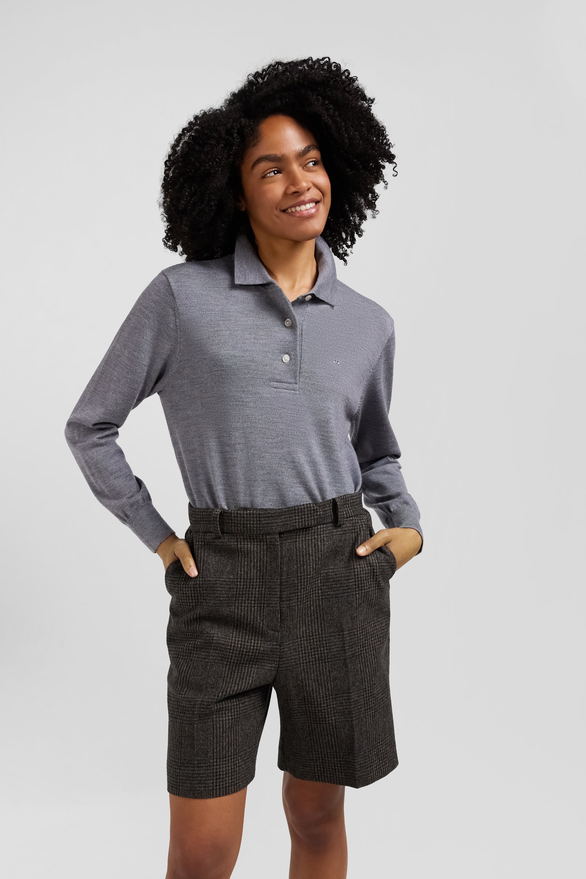 Regular mottled grey women's wool jumper with rugby shirt collar