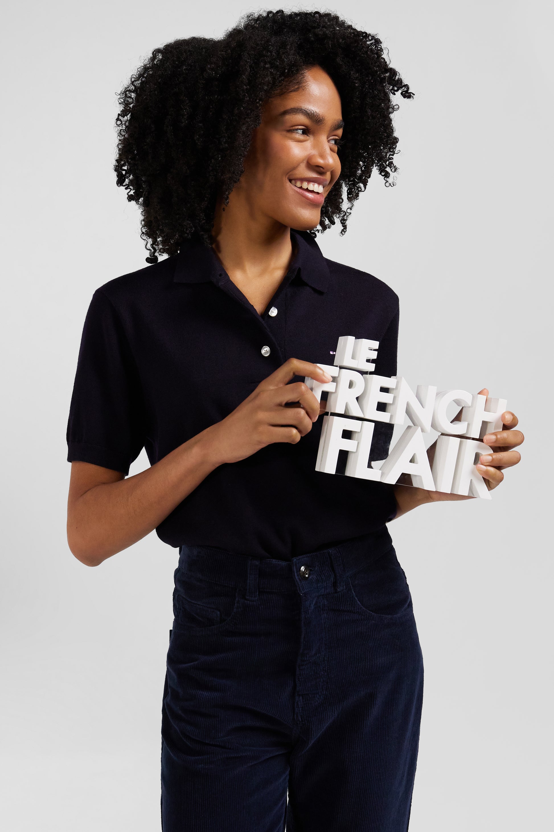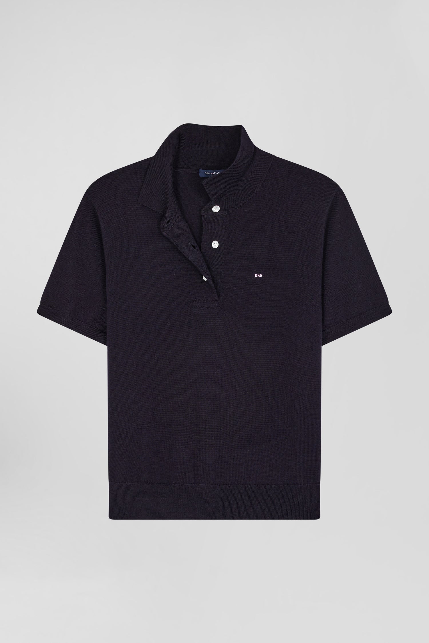This women's polo-neck short-sleeved sweater in wool features a straight Regular fit for comfort and elegance. Signature oval rugby buttons add a distinctive touch to this timeless piece. Available in navy, black and three shades of gray, this versatile sweater is perfect for a casual chic look or a more professional look to match your associations. Wear it with a skirt or jeans to vary your style.