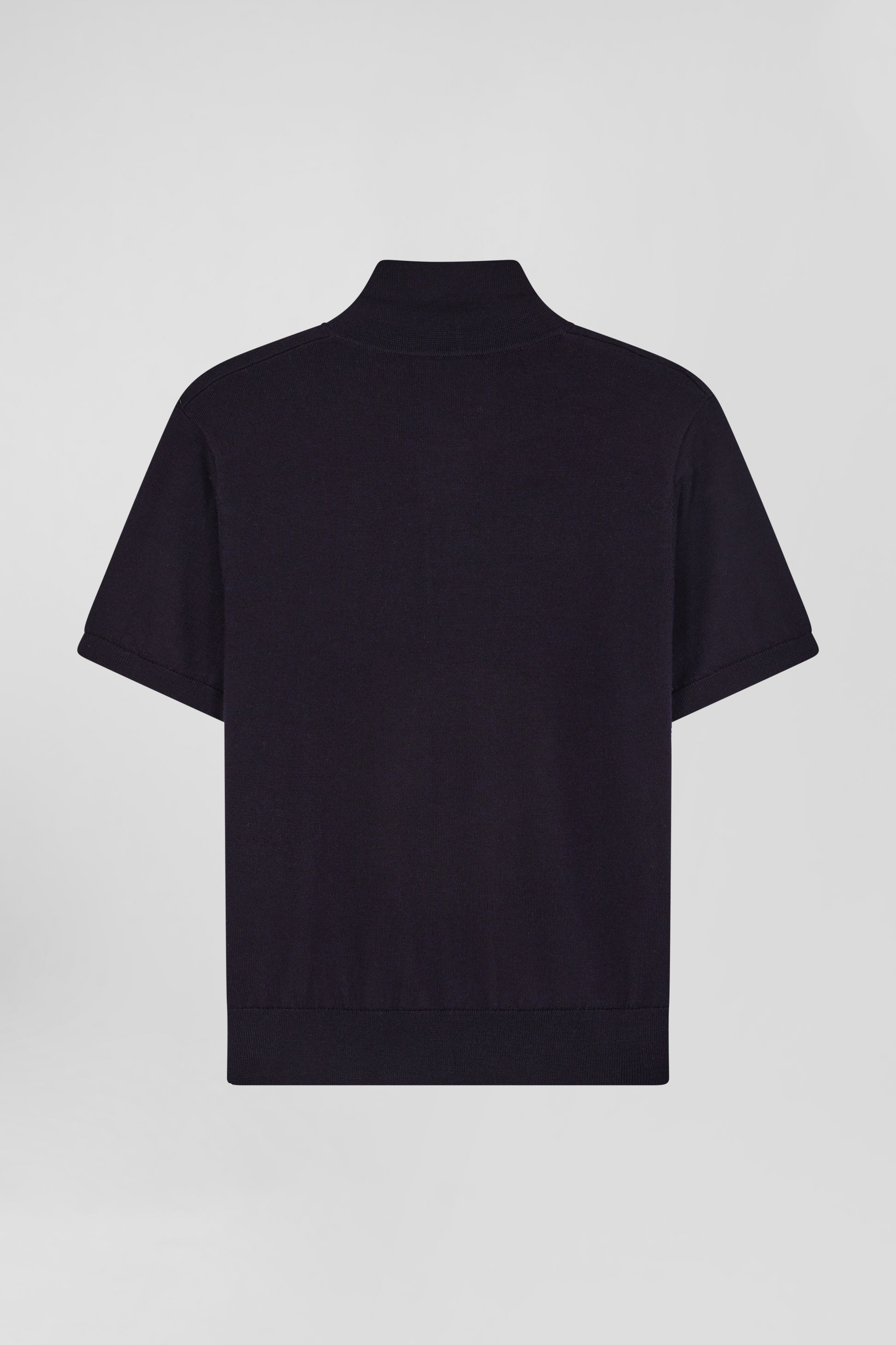 Regular navy blue short-sleeved wool polo neck jumper