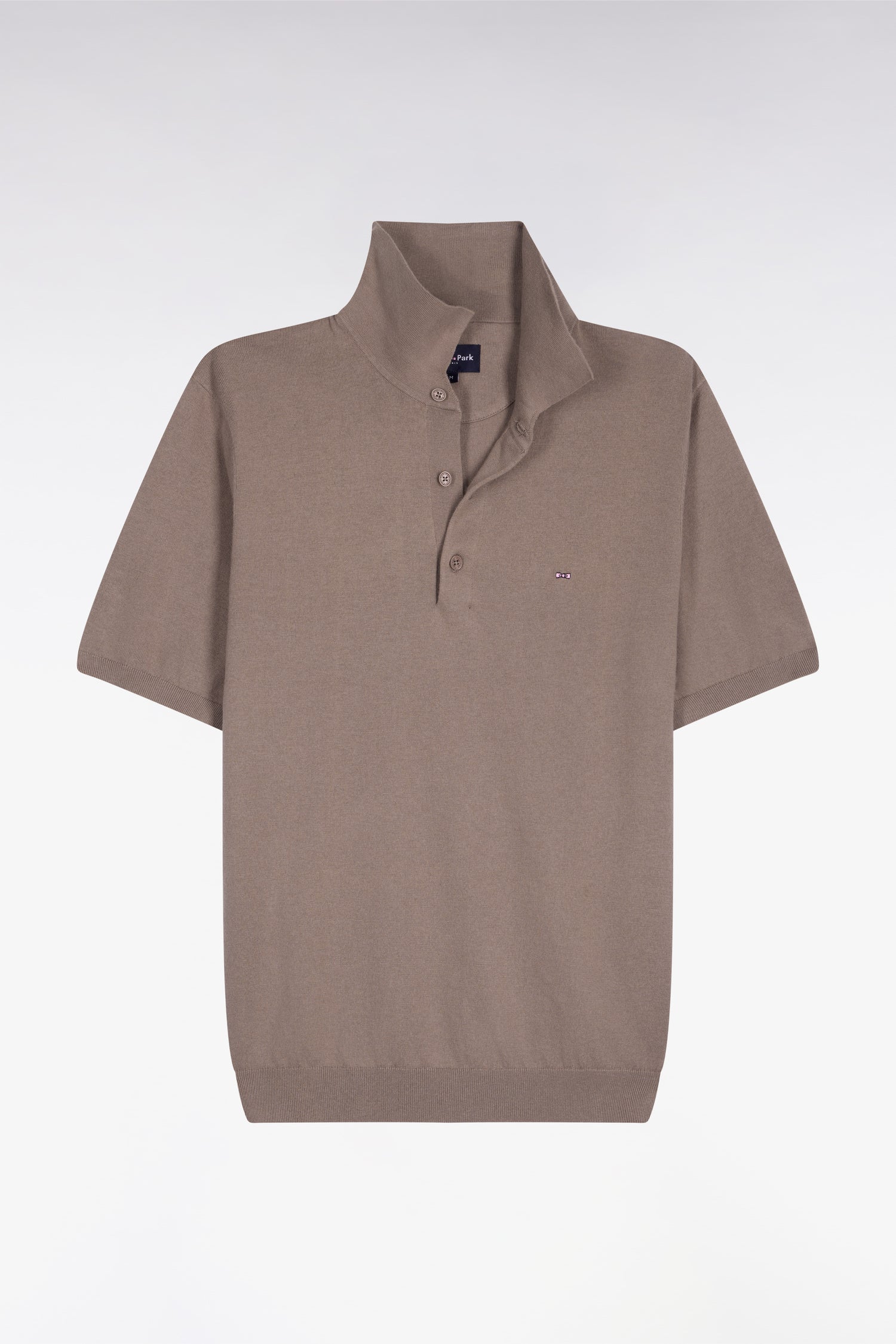 Pull manches courtes col polo en coton et soie mélangés beige