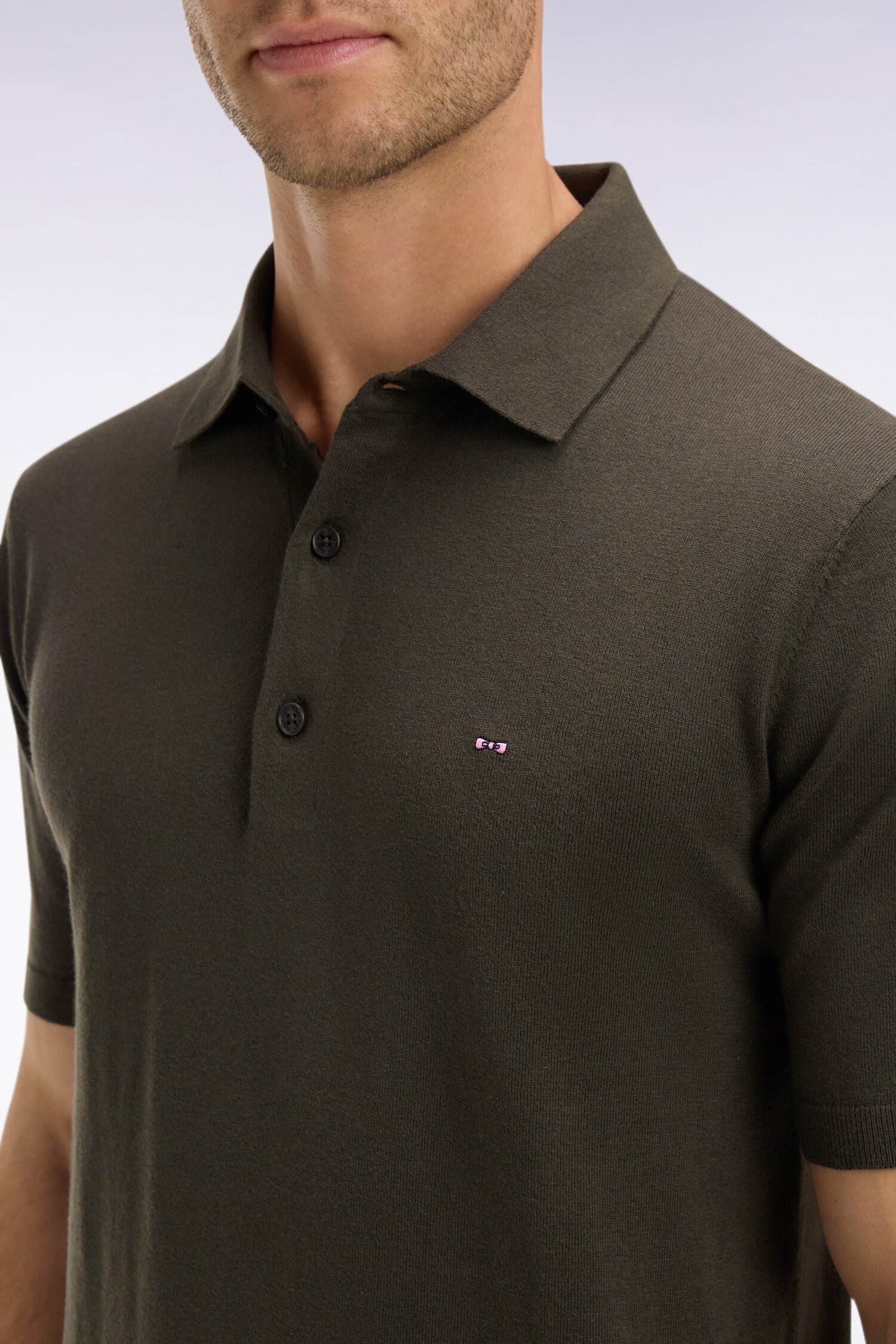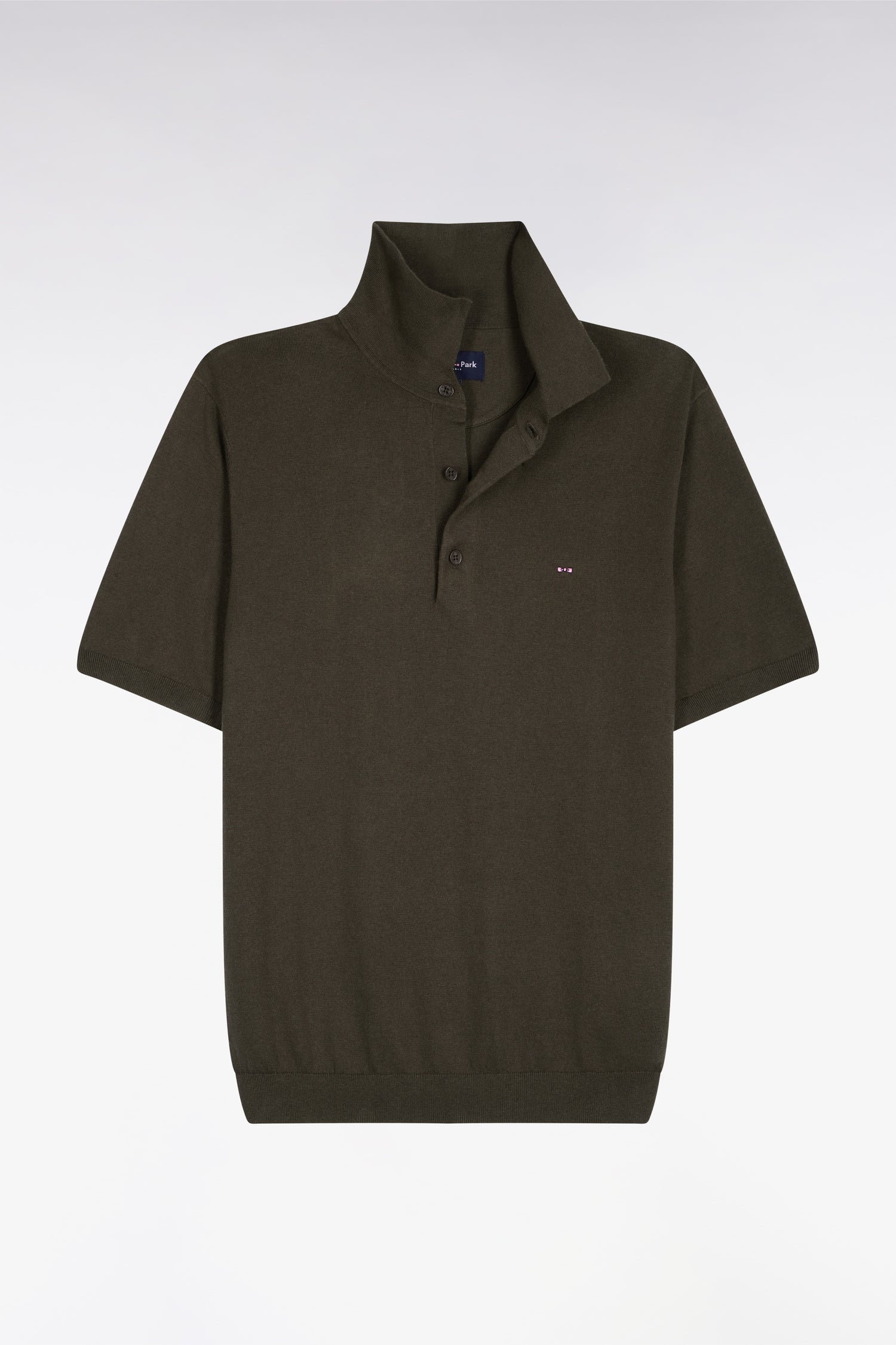Pull manches courtes col polo en coton et soie mélangés kaki