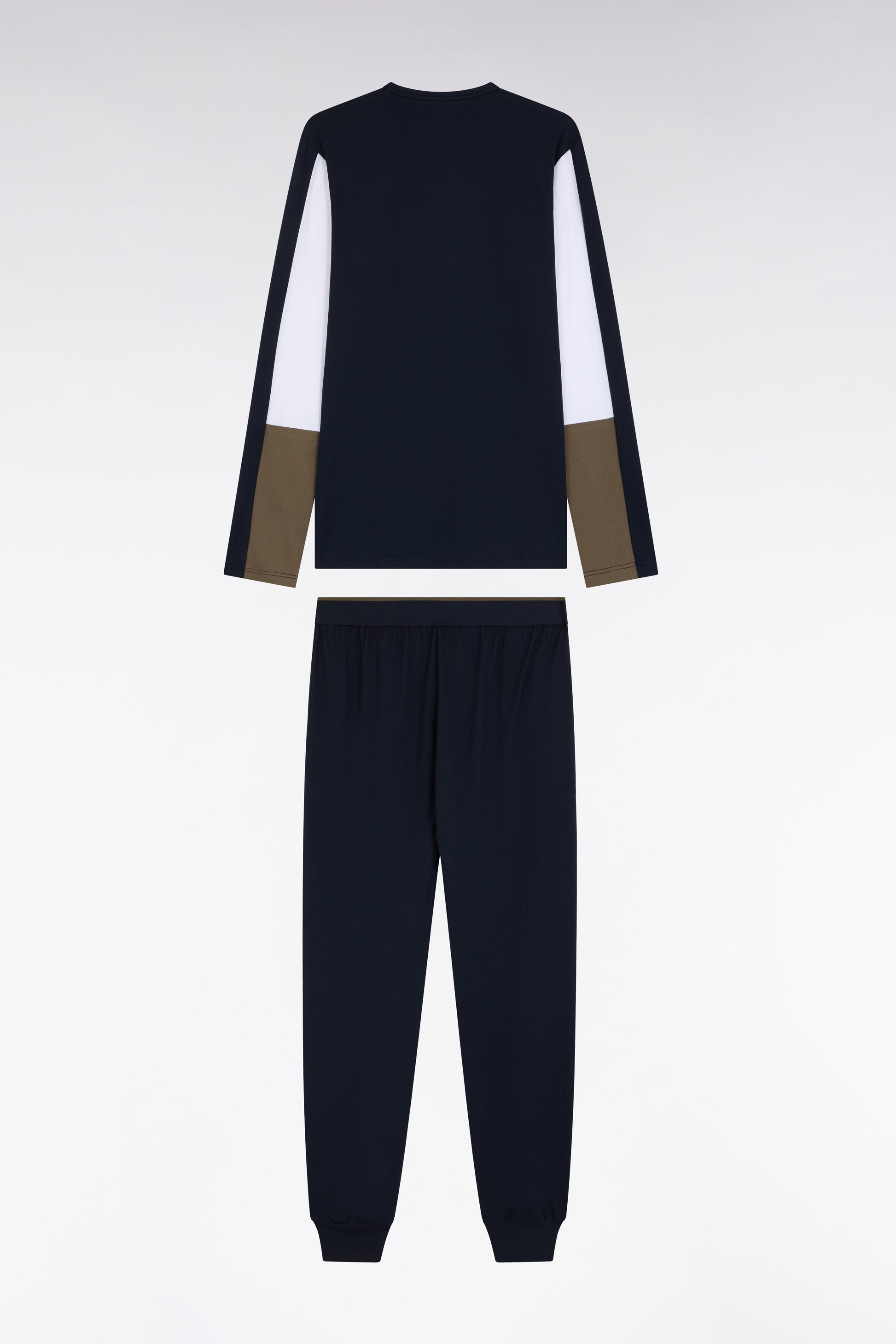 Long pyjamas in khaki colorblock cotton jersey - A SHOOTER