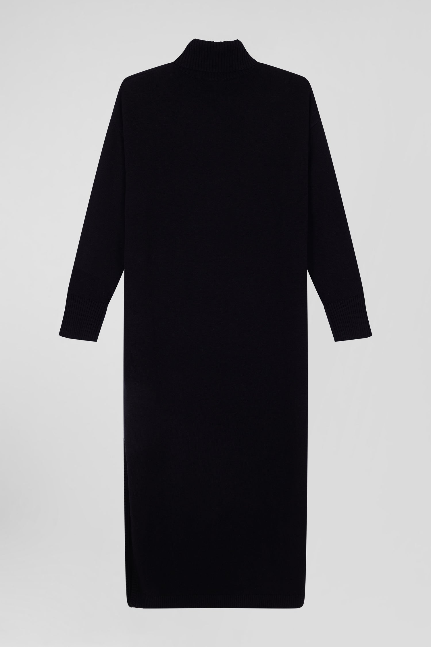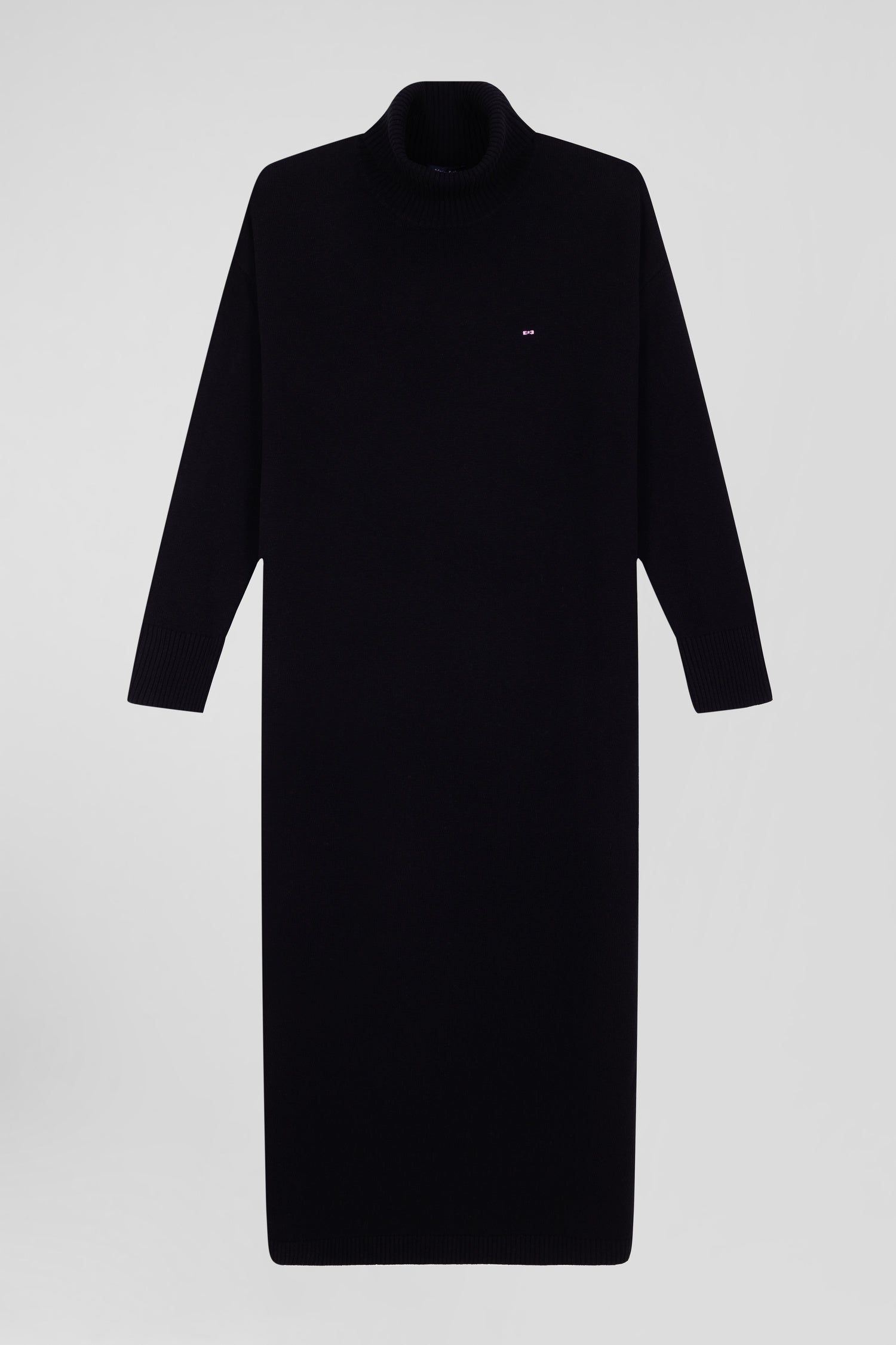 Opt for the timeless elegance of our turtleneck dress, crafted from a soft blend of wool and cotton. This piece features a relaxed fit for added ease and a knit fabric for warmth and style in the winter months. Its discreet pink bowtie embroidery on the chest adds an understated touch of femininity. Perfect for a variety of occasions, this mesh dress adapts to different styles: wear it with tall boots for a sophisticated look, or sneakers for a more casual approach. A versatile and elegant addition to your wardrobe, ideal for enhancing your look this season.