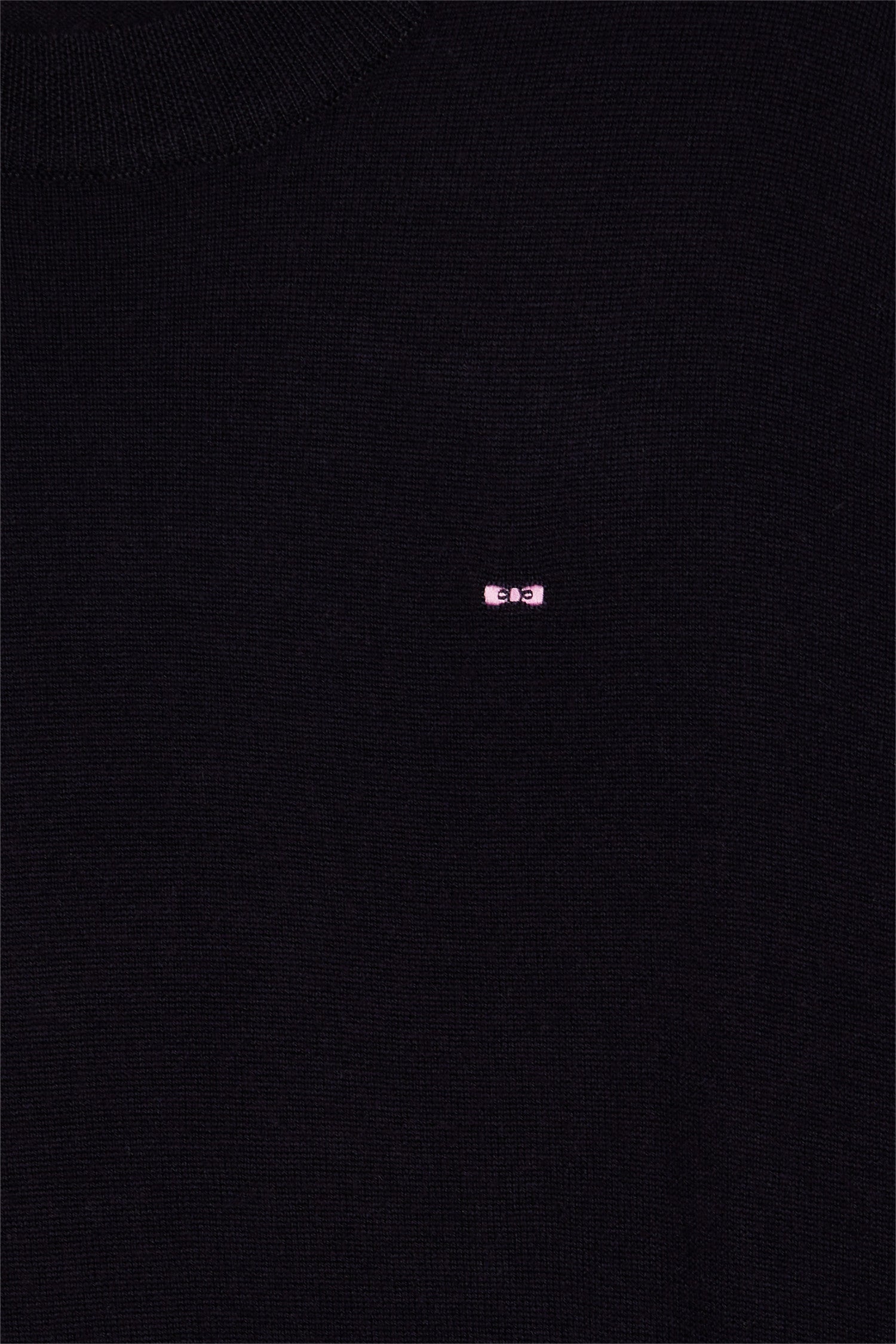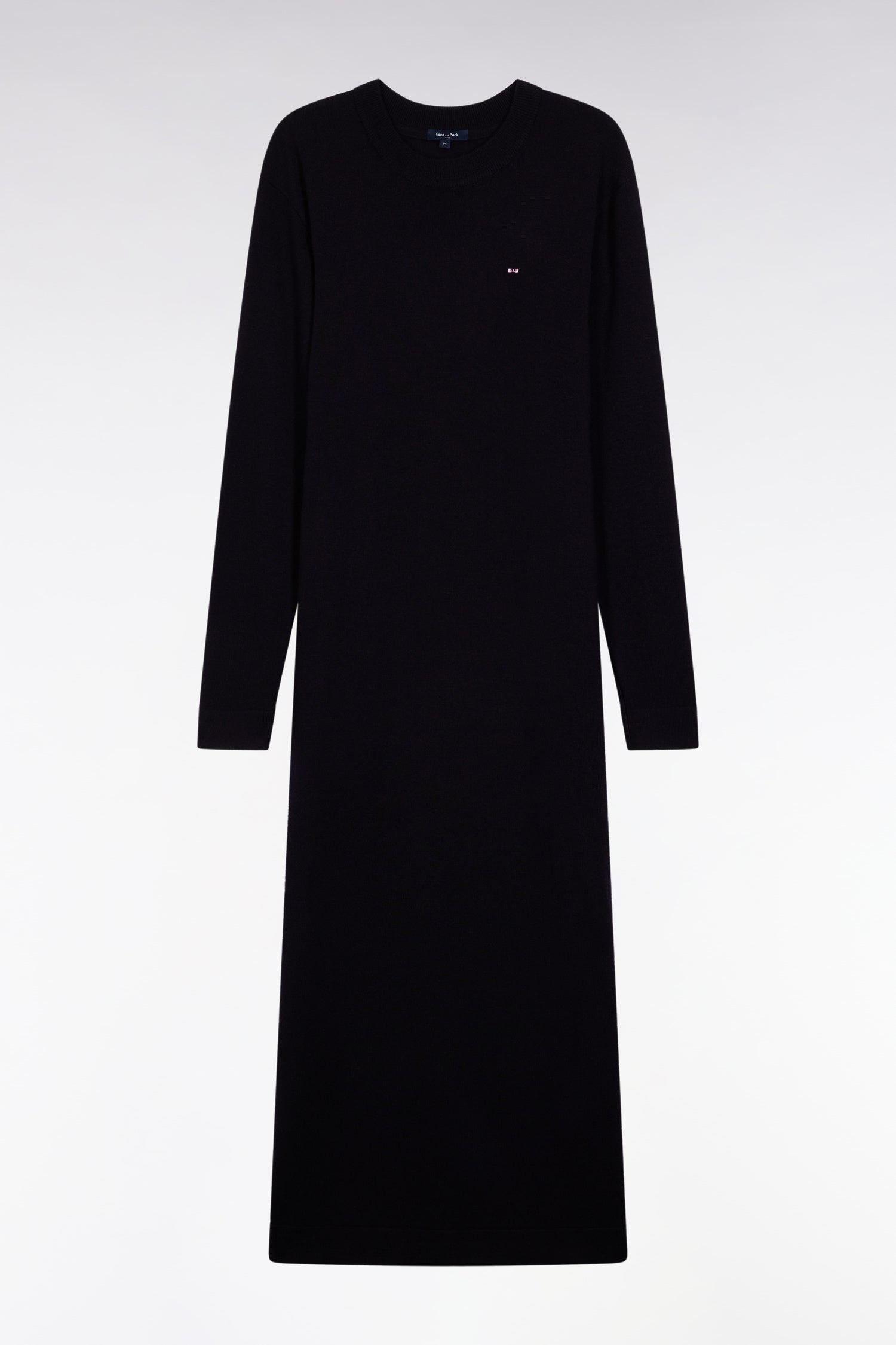 A classic in women's wardrobes, the knitted tube dress is offered here in navy or burgundy merino wool for soft, warm all-day wear. Soberly adorned with our bow-tie embroidery, this autumn-winter dress can be worn with everything from the most elegant silhouettes to casual outfits. Its sleek round collar reinforces the timeless, refined look of this versatile model.